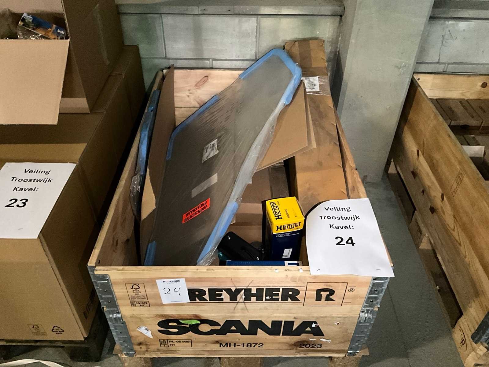 Diverse universele tractor onderdelen, onder andere, speigels, dynamo's, ramen, etc, betreft een ongebruikte product, Let op! zonder pallets of palletranden,