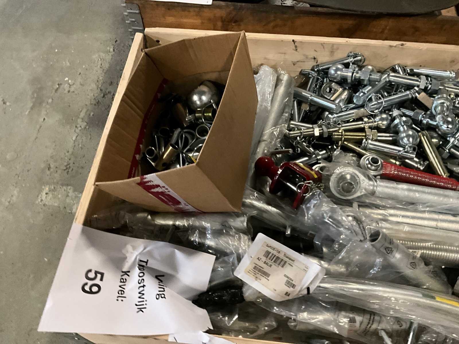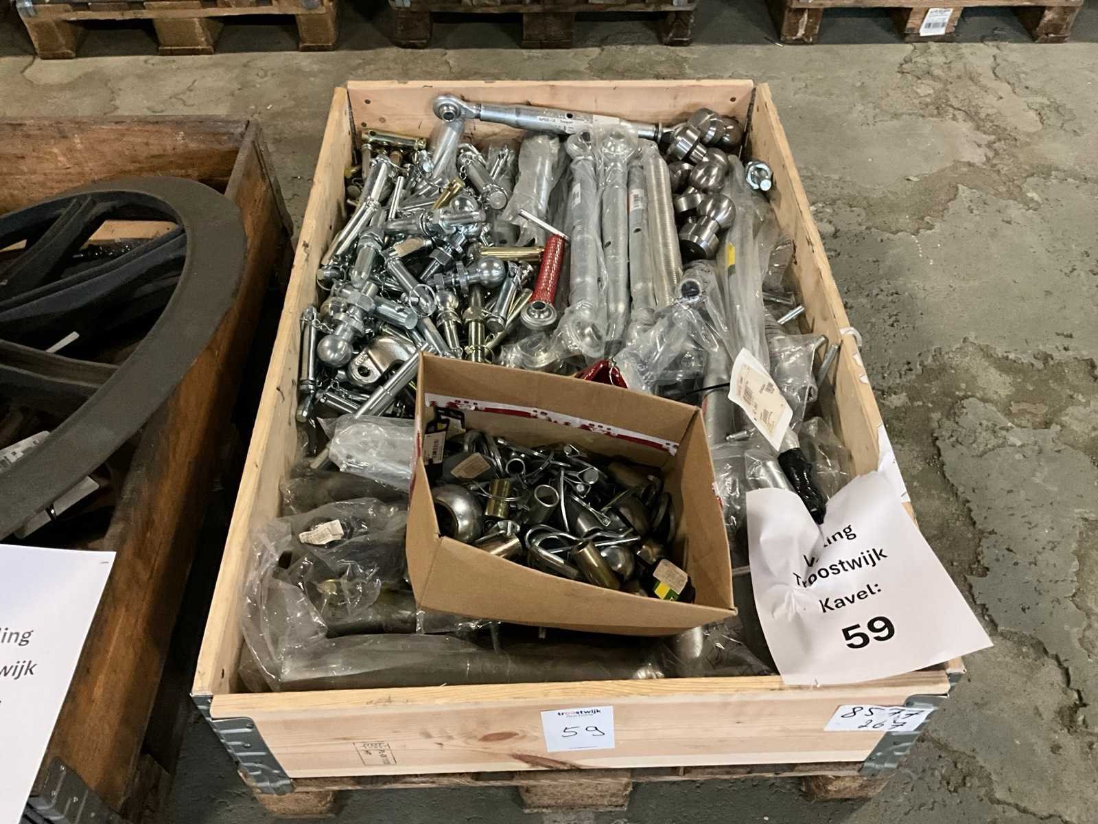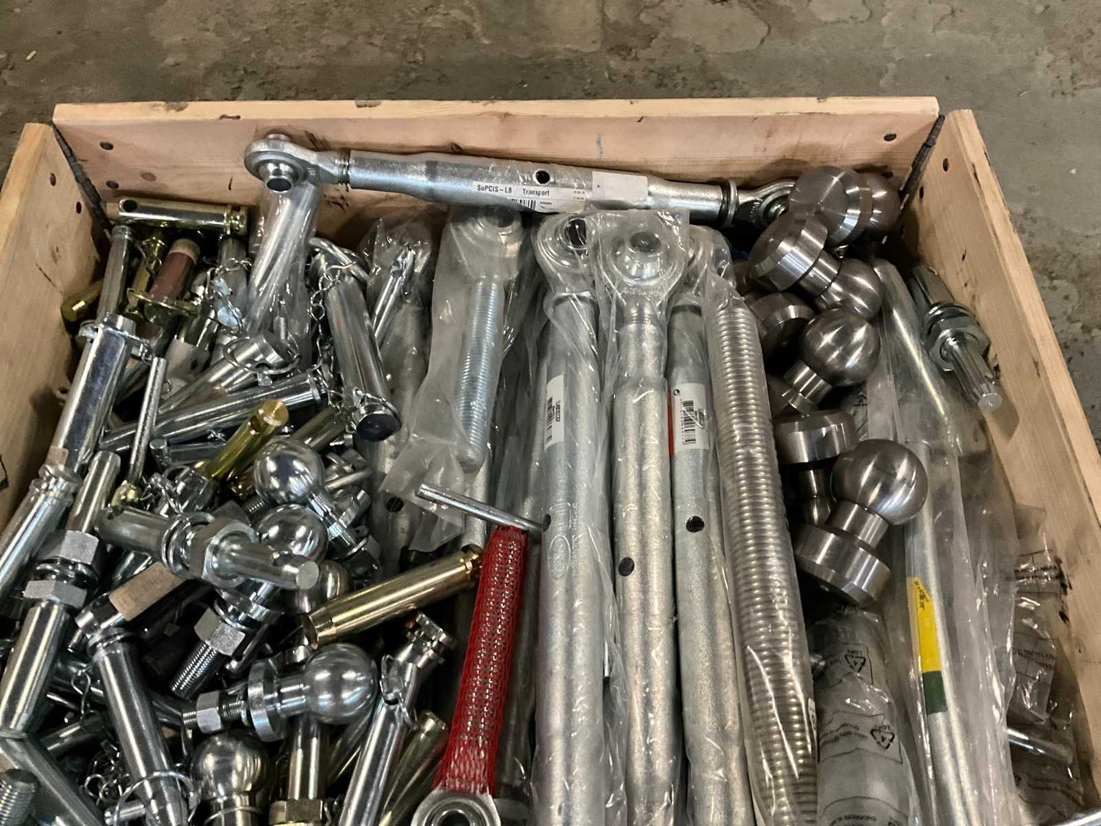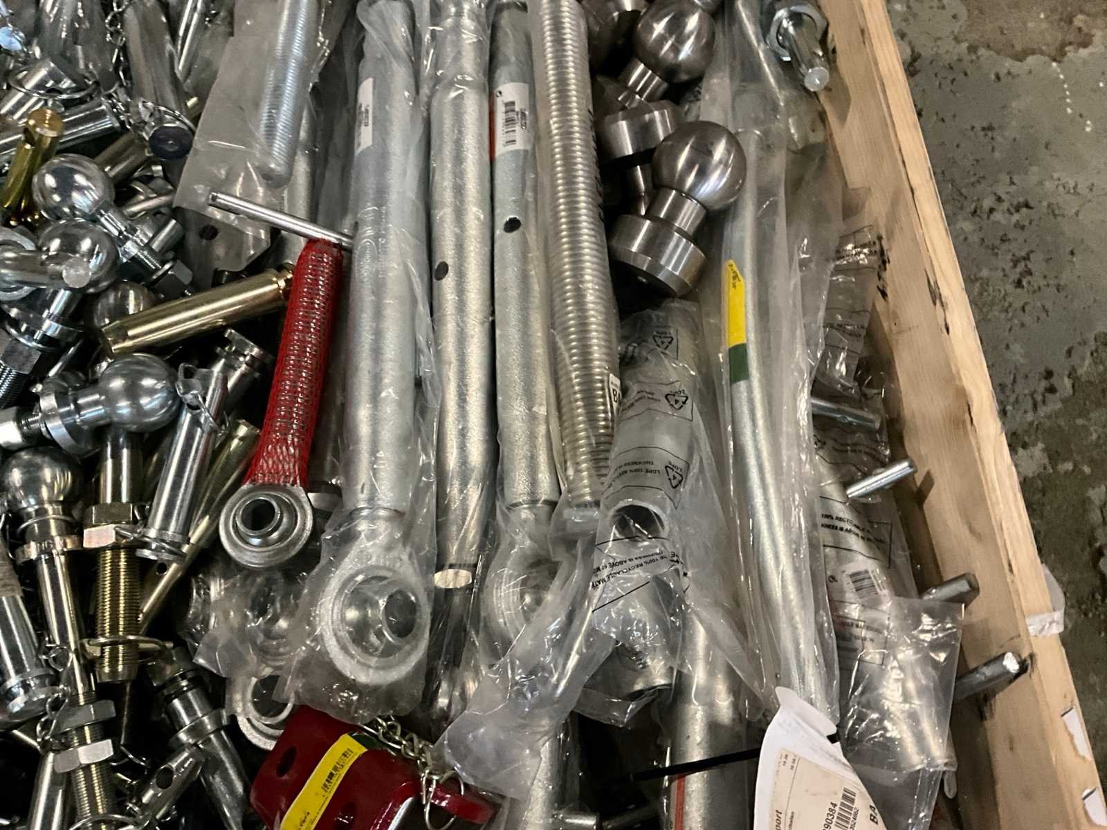 Topstangen, topstangbuizen en spindels, topstang- en werktuigpennen, hefkogels, kogels K50 en K80, betreft een ongebruikte product, Let op! zonder pallets of palletranden,