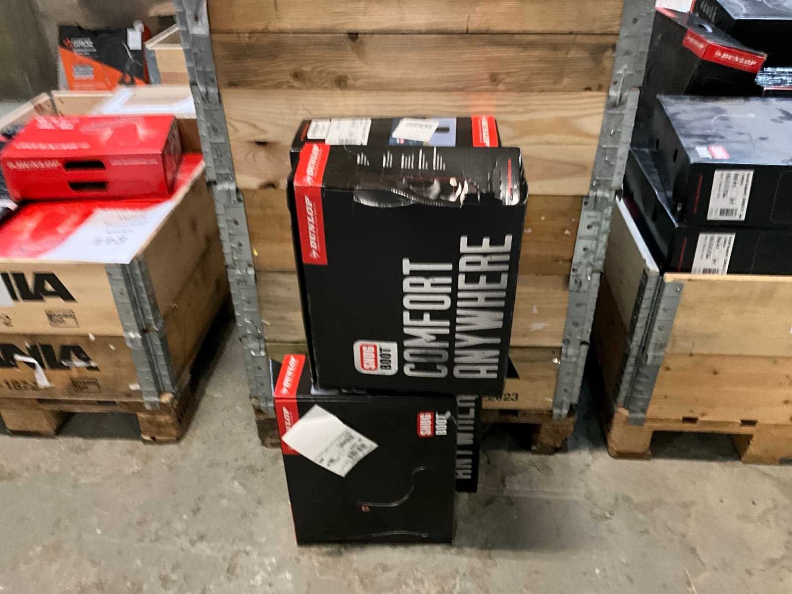 Diverse maten, maat 38, maat 39-40, maat 41, maat 42, maat 43, maat 44-45, maat 46, totaal ongeveer 55 paar, betreft een ongebruikte product, Let op! zonder pallets of palletranden, Merk: Dunlop Type: Snugboot Pioneer