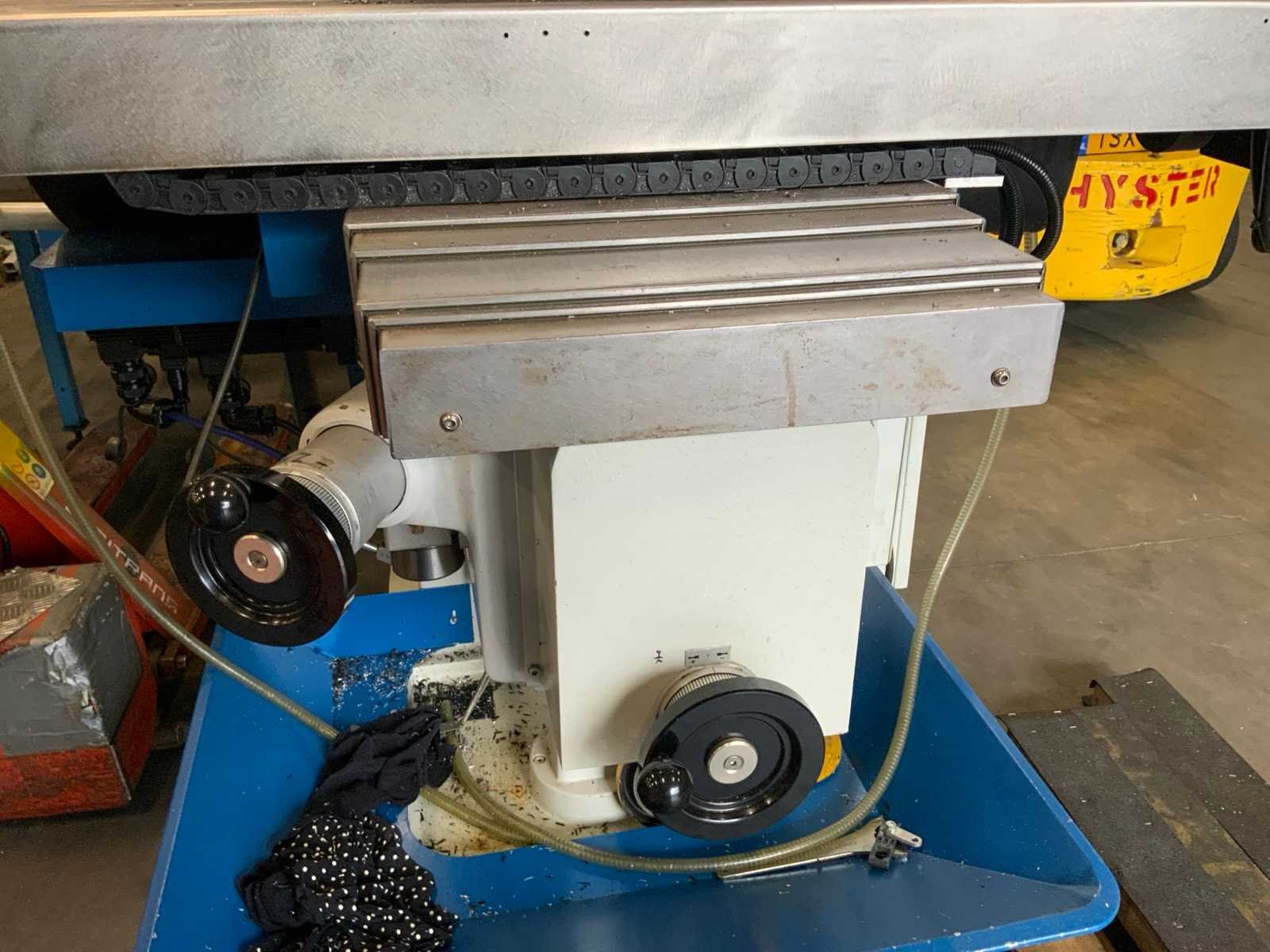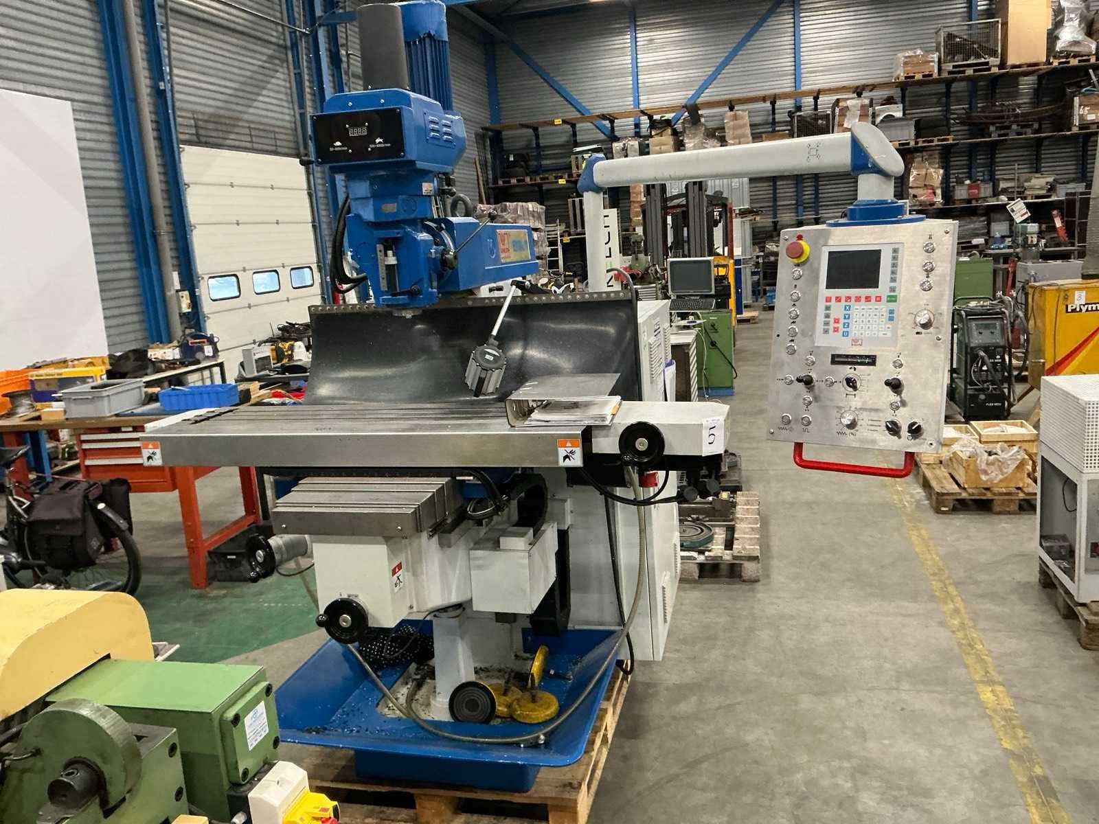 Pinole slag: 125mm, voorzien van .pos Plus digitale uitleessysteem Merk: Knuth Type: Servomill 700 Bouwjaar: 2017 Serienummer: 162748 Verplaatsing x-as: 680mm Verplaatsing y-as: 365mm Verplaatsing z-as: 370mm Opname iso: 40 Snelheid van n =: 50rpm Snelheid tot n =: 4000rpm T-gleuf opspantafelafmeting L: 1370mm T-gleuf opspantafelafmeting B: 310mm Aansluiting: 400V Machinegewicht: 1800kg Afmeting l: 2100mm Afmeting b: 2000mm Afmeting h: 2680mm