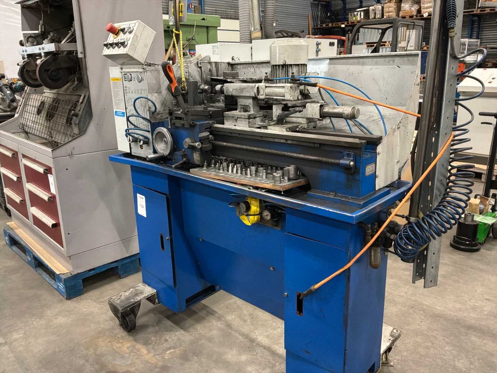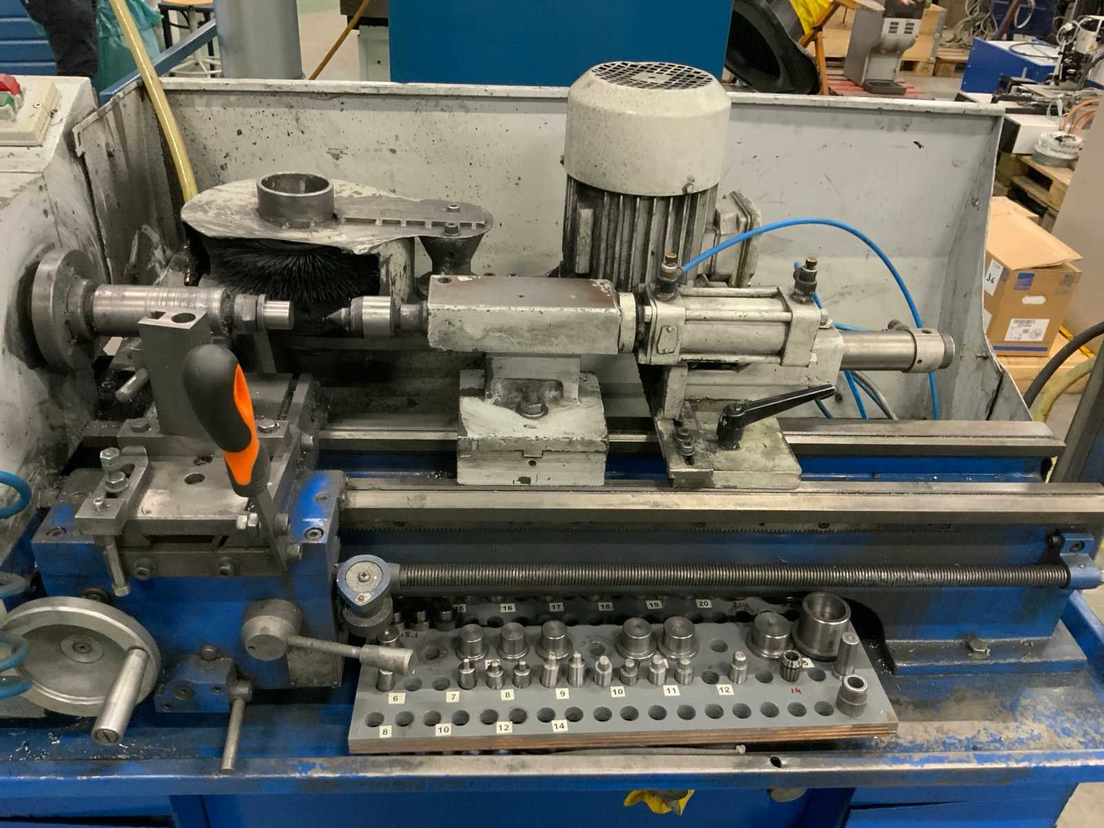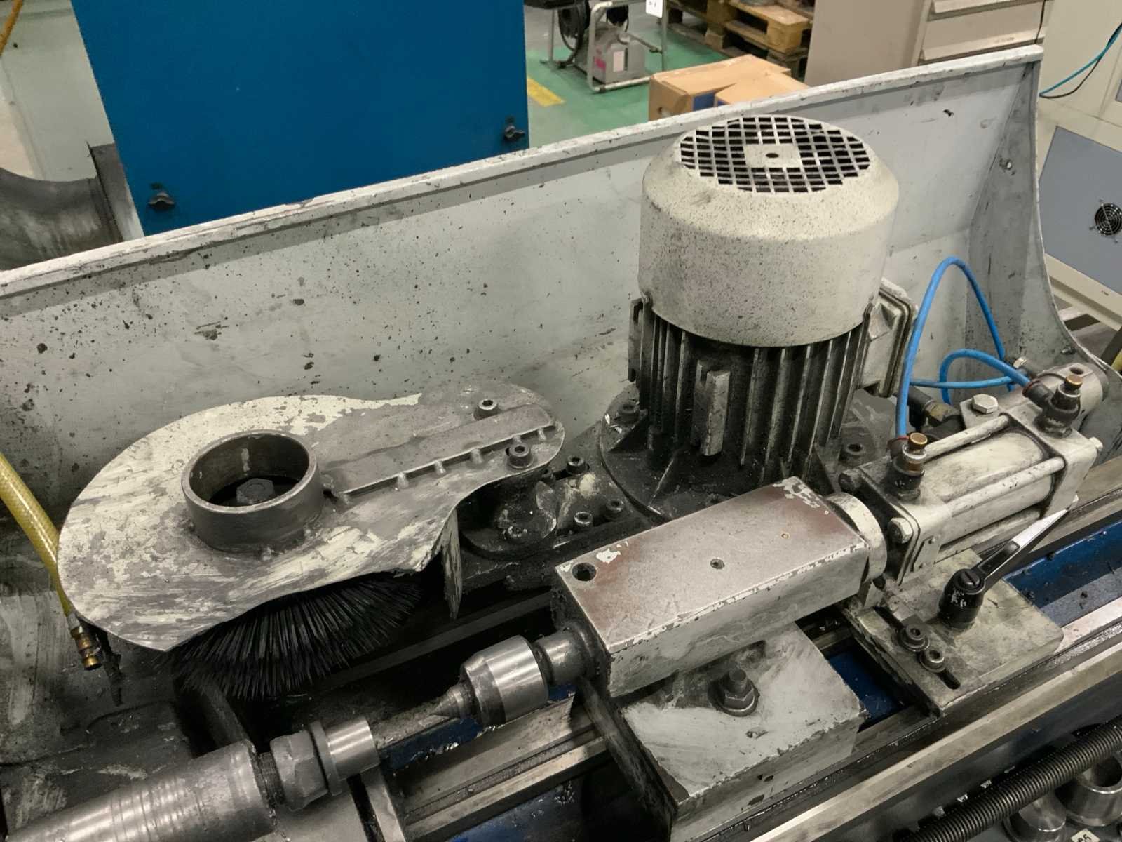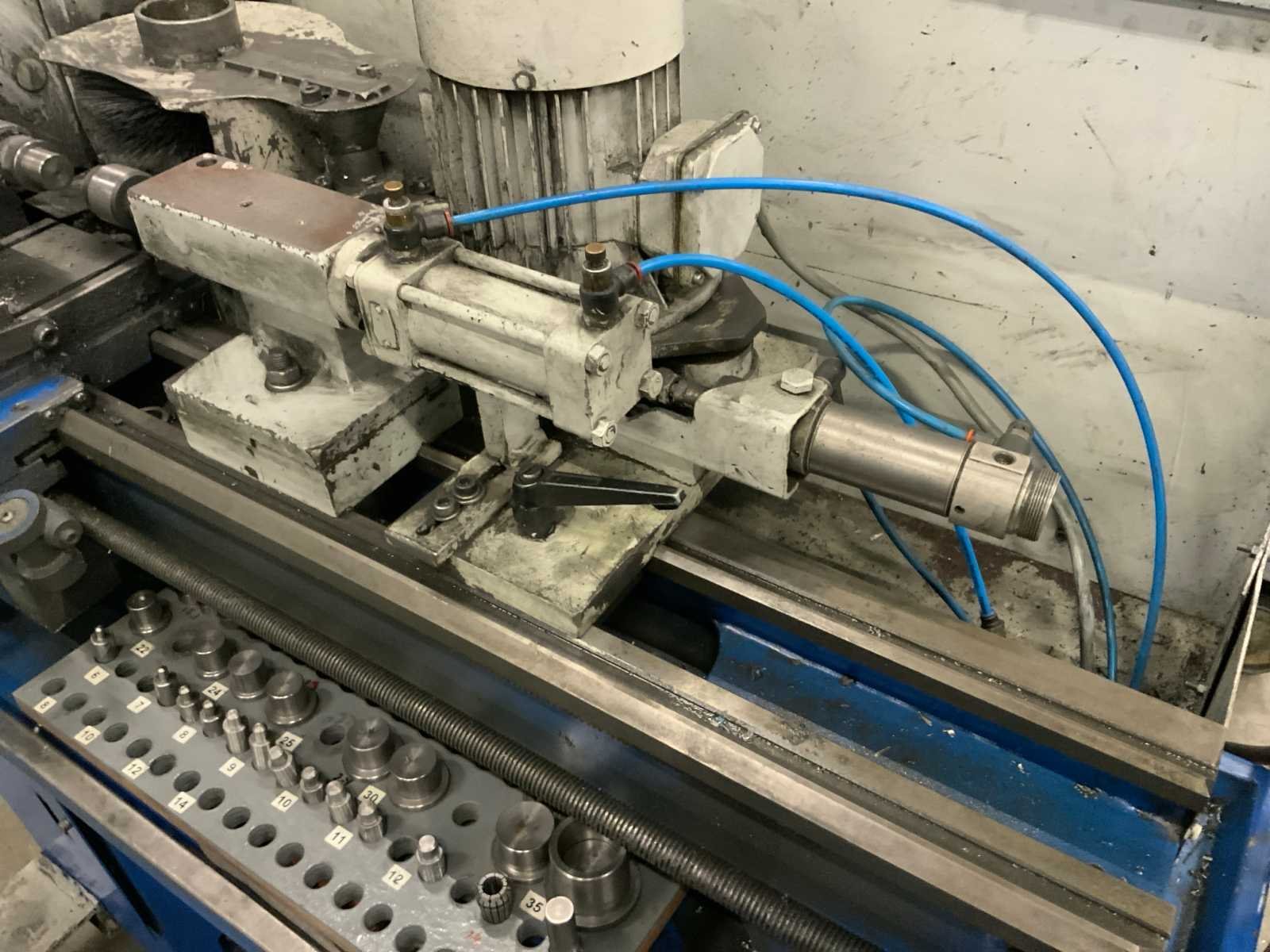 Voorzien van pneumatische gevoede staalborstel inrichting en tegencenter, op verrijdbaar onderstel. inclusief toebehoren Bouwjaar: 2002 Serienummer: 0260725 Draailengte: 500mm Draai: 260mm Holle spil Ø: 28mm Aantal snelheden: 6 Snelheid van n =: 125rpm Snelheid tot n =: 2000rpm Aansluiting: 380V Afmeting l: 1460mm Afmeting b: 820mm Afmeting h: 3270mm