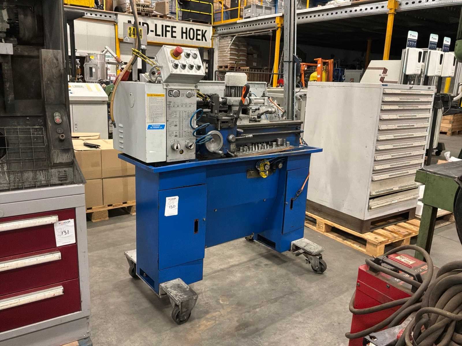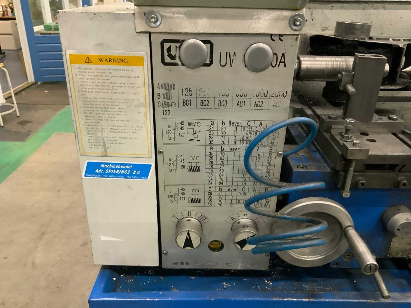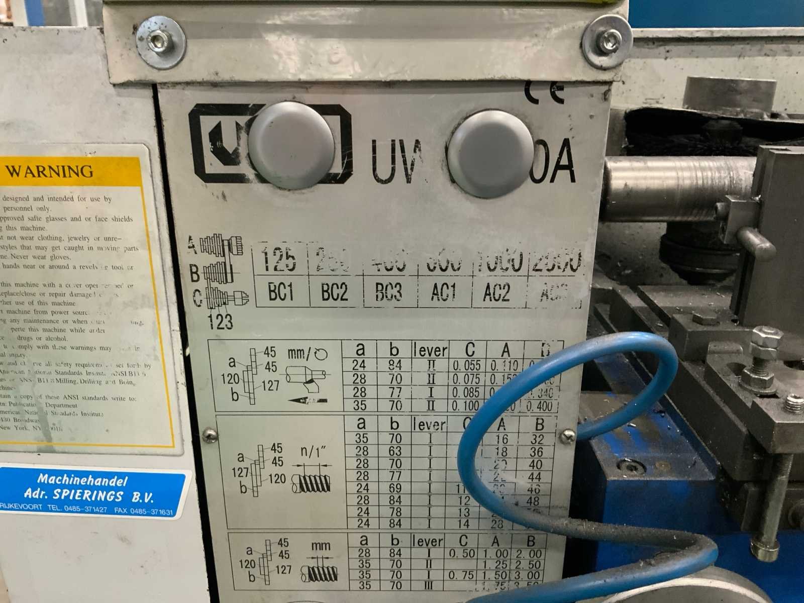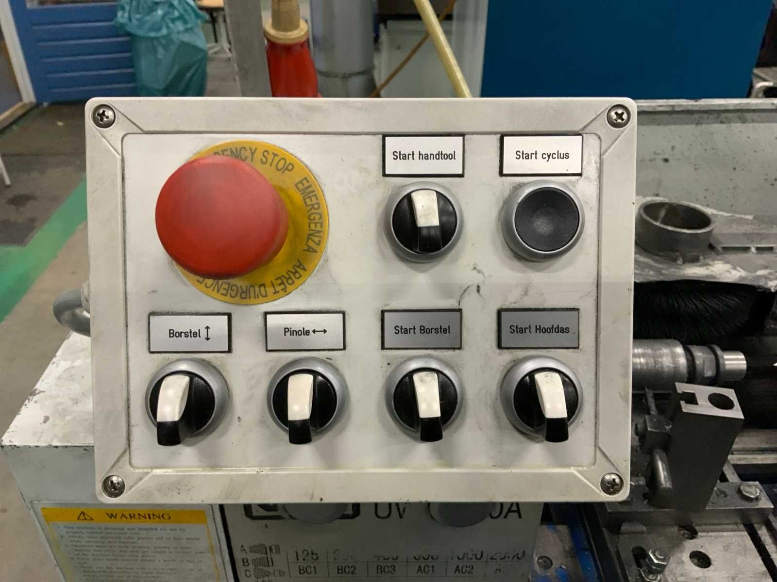 Voorzien van pneumatische gevoede staalborstel inrichting en tegencenter, op verrijdbaar onderstel. inclusief toebehoren Bouwjaar: 2002 Serienummer: 0260725 Draailengte: 500mm Draai: 260mm Holle spil Ø: 28mm Aantal snelheden: 6 Snelheid van n =: 125rpm Snelheid tot n =: 2000rpm Aansluiting: 380V Afmeting l: 1460mm Afmeting b: 820mm Afmeting h: 3270mm