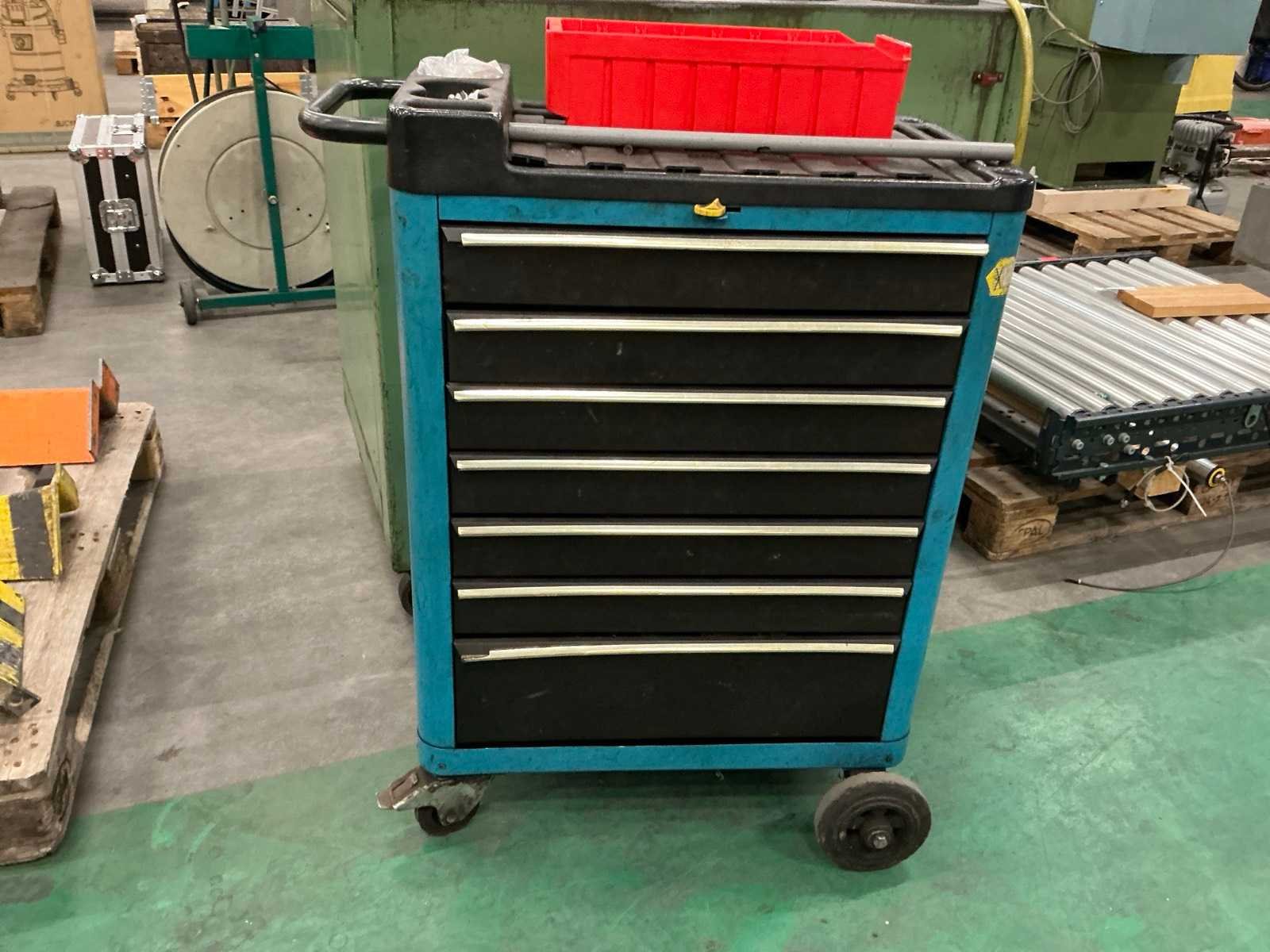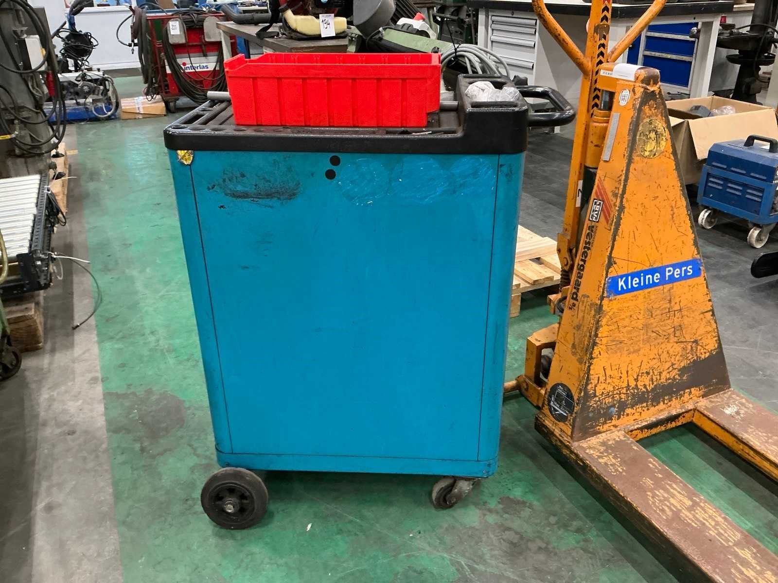 Met 2 vaste wielen en 2 zwenkwielen waarvan 1 met rem Merk: Hazet Type: Assistent 169N Aantal laden: 7 Met inhoud: true Totale afmeting L: 850mm Totale afmeting Breedte: 570mm Totale afmeting Hoogte: 980mm