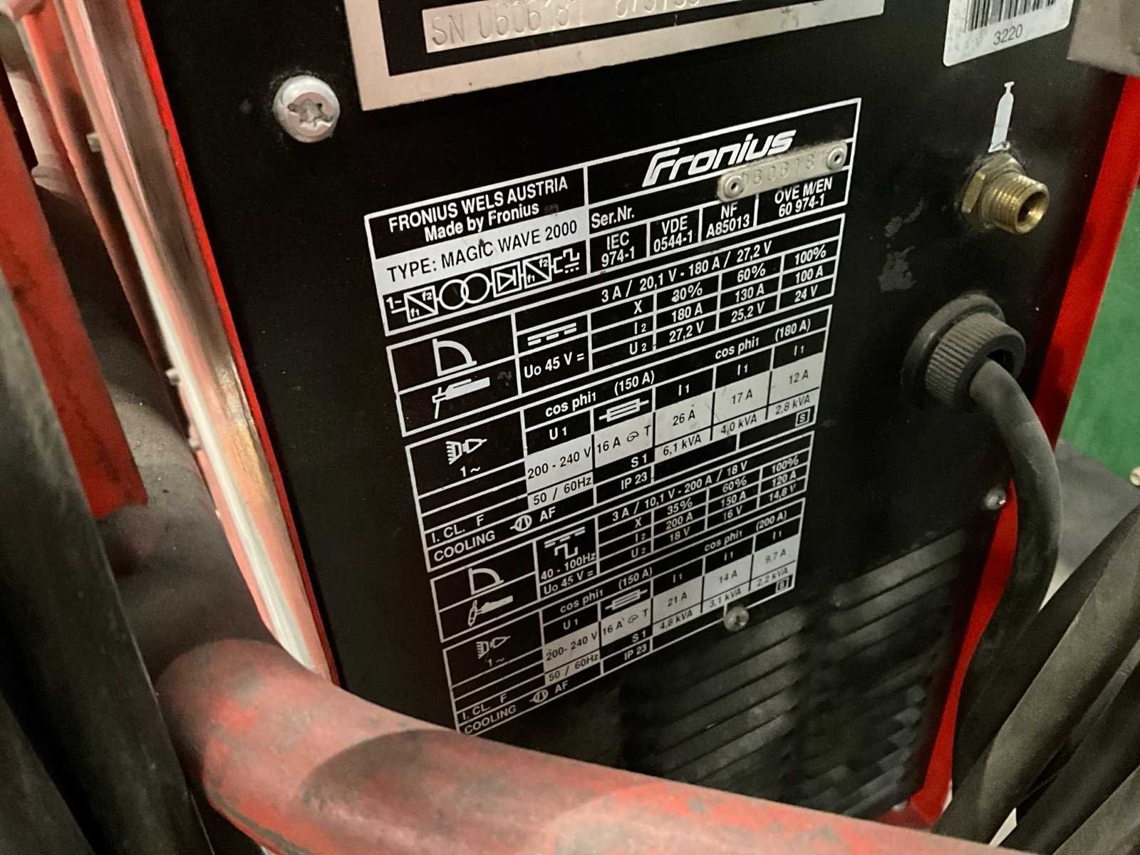 1x watergekoelde tig lastorch, 1x tig lastorch, 1x electrode lastorch Merk: Interlas Type: Magic Wave 2000 Serienummer: 0606181 Tig type: true Electrode type: true Ampère belasting: 200A Aansluiting: 230V