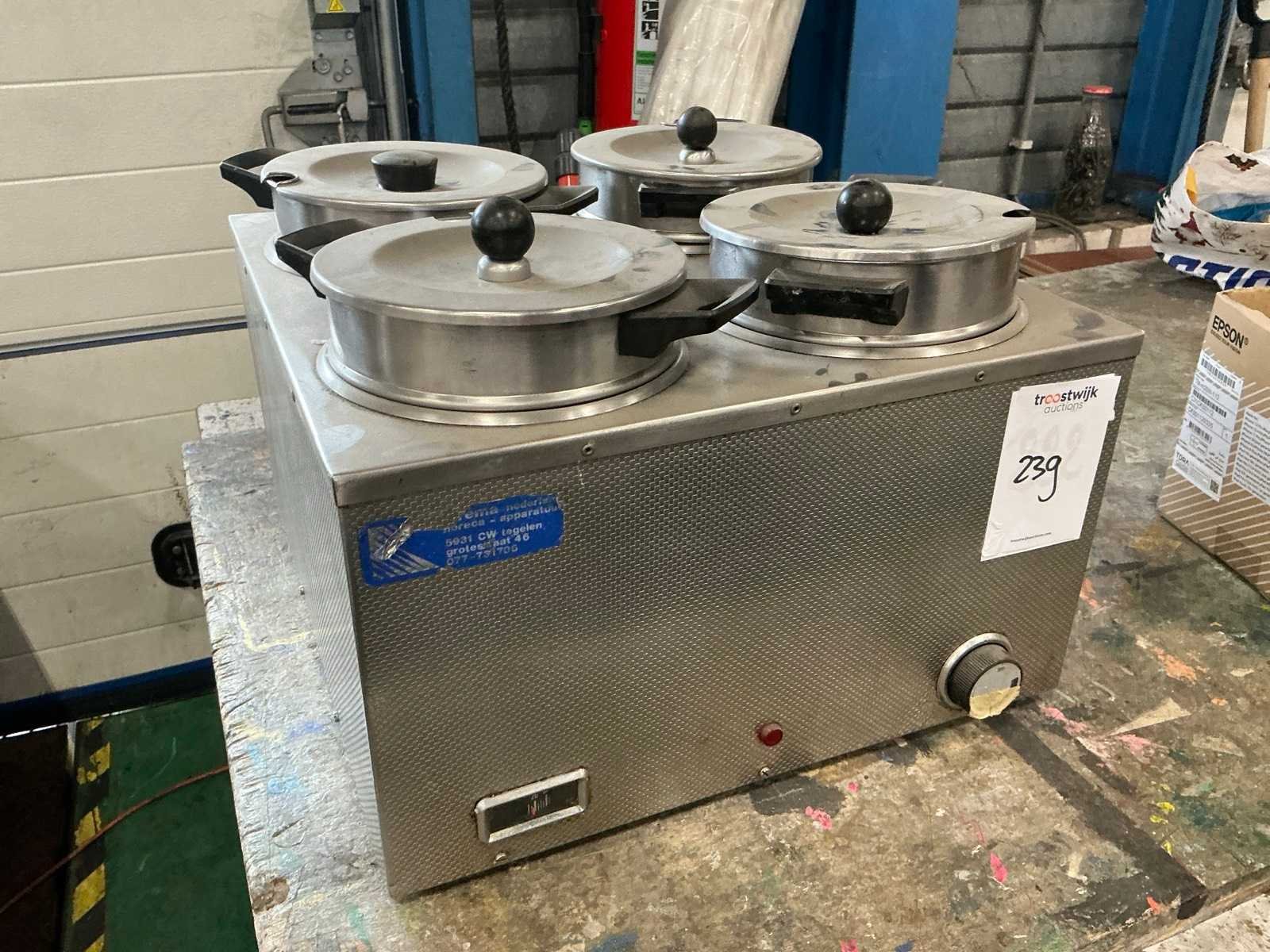 4 potten 18x19cm, zonder stekker Merk: KIREMA Totale afmeting L: 44cm Totale afmeting Breedte: 44cm Totale afmeting Hoogte: 33cm Rvs: true Vrijstaand: true Regelbare thermostaat: true Aansluiting: 230V