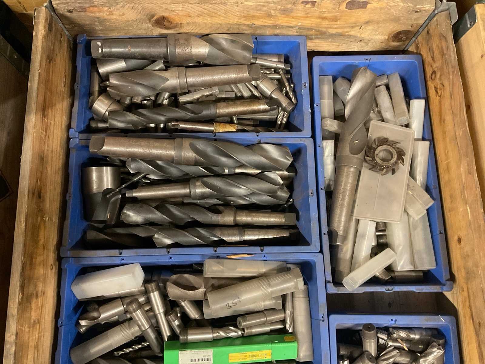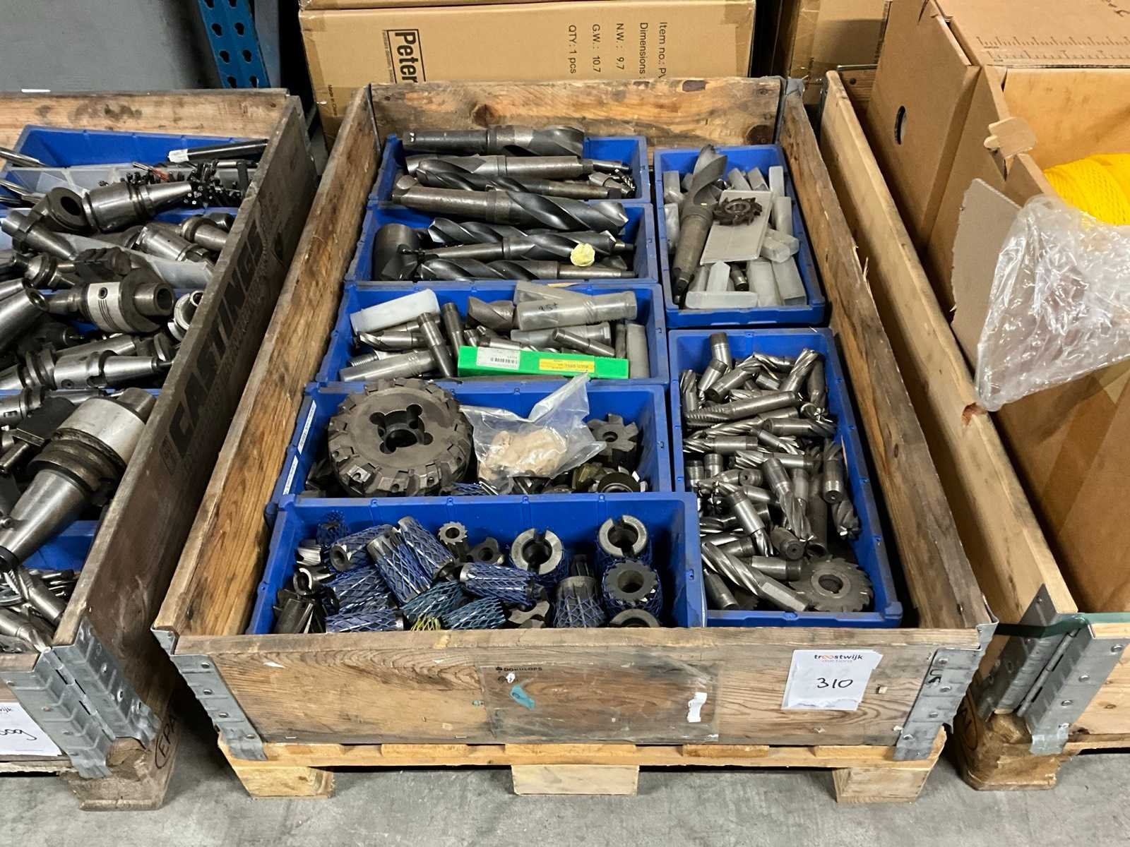Diverse frezen; gereedschapshouders; diverse ruimers; boren; inclusief kunststof kratten; zonder palletbox;
