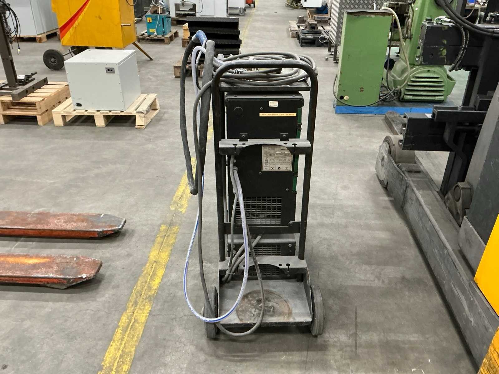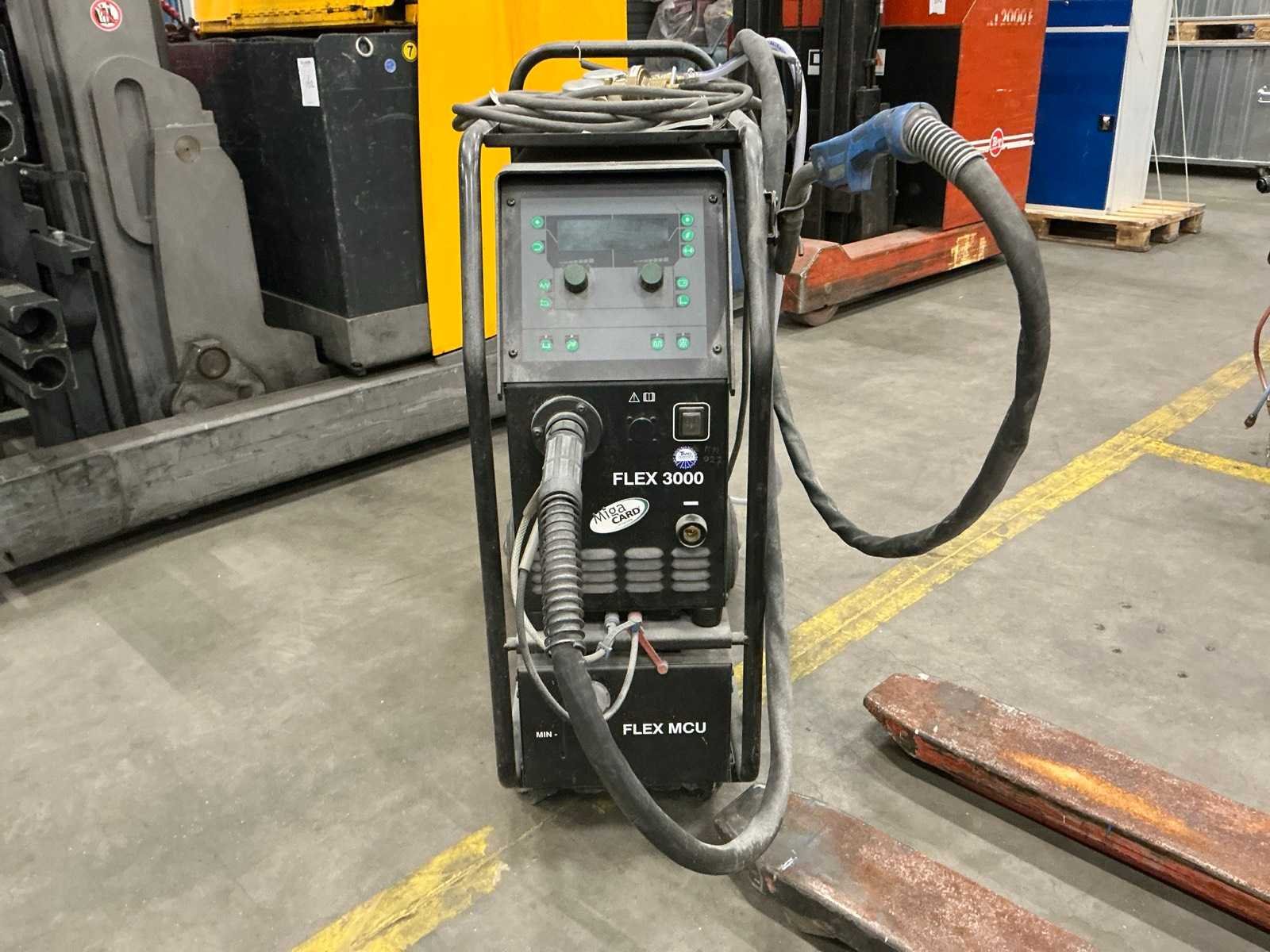 Met ontspanner Merk: Migatronic Type: Flex 3000 C Serienummer: 06121148 Max. lasvermogen: 300A Aansluiting: 400V Digitale uitlezing: true Draadaanvoerunit: true Afmeting l: 1350mm Afmeting b: 510mm Afmeting h: 1080mm