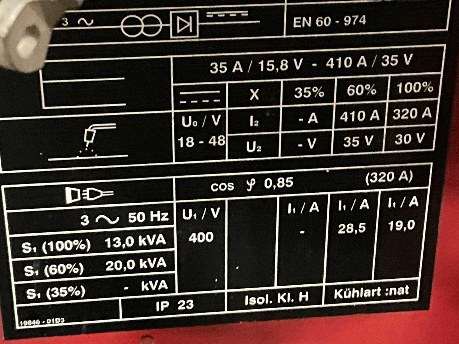 Waterkoeling torch, geen torch Merk: Rowac Type: Perfect 41 Serienummer: 01109 Max. lasvermogen: 410A Aansluiting: 400V Draadaanvoerunit: true