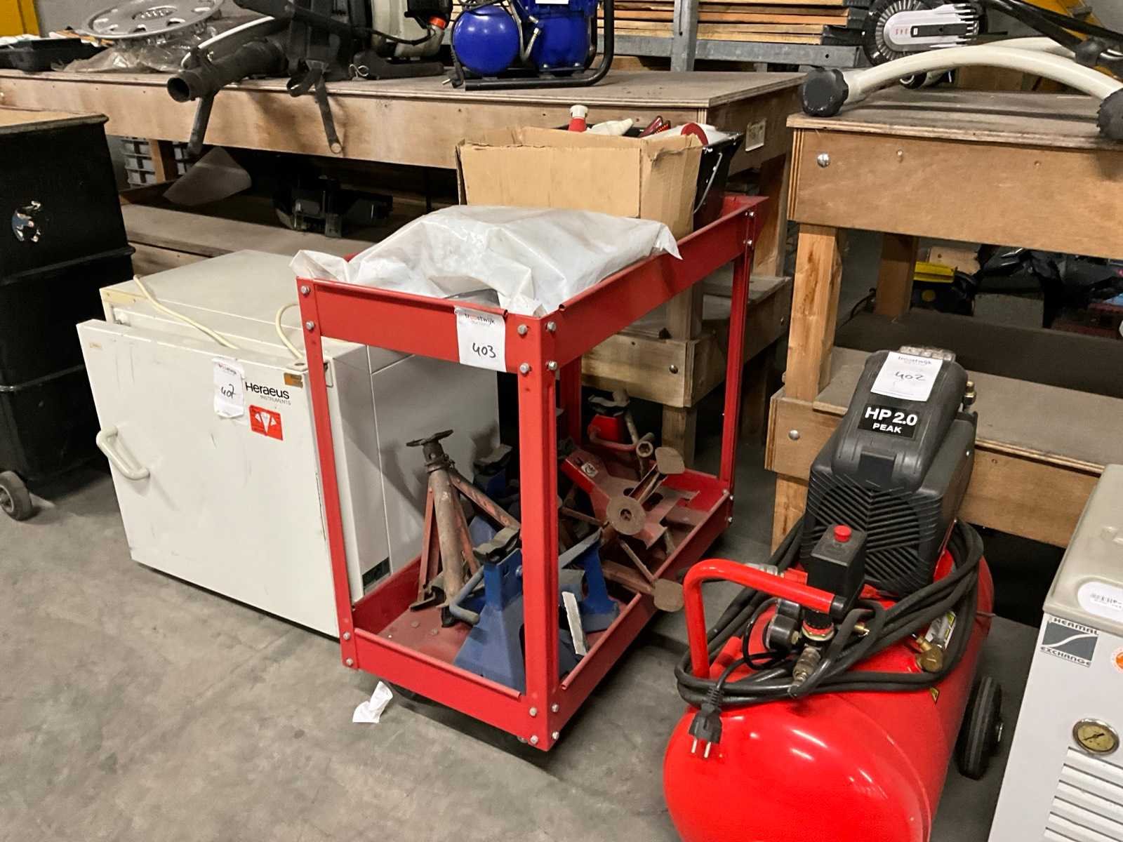 Waaronder 1 transportkar, krachtstroom stekkers; diverse assteunen;