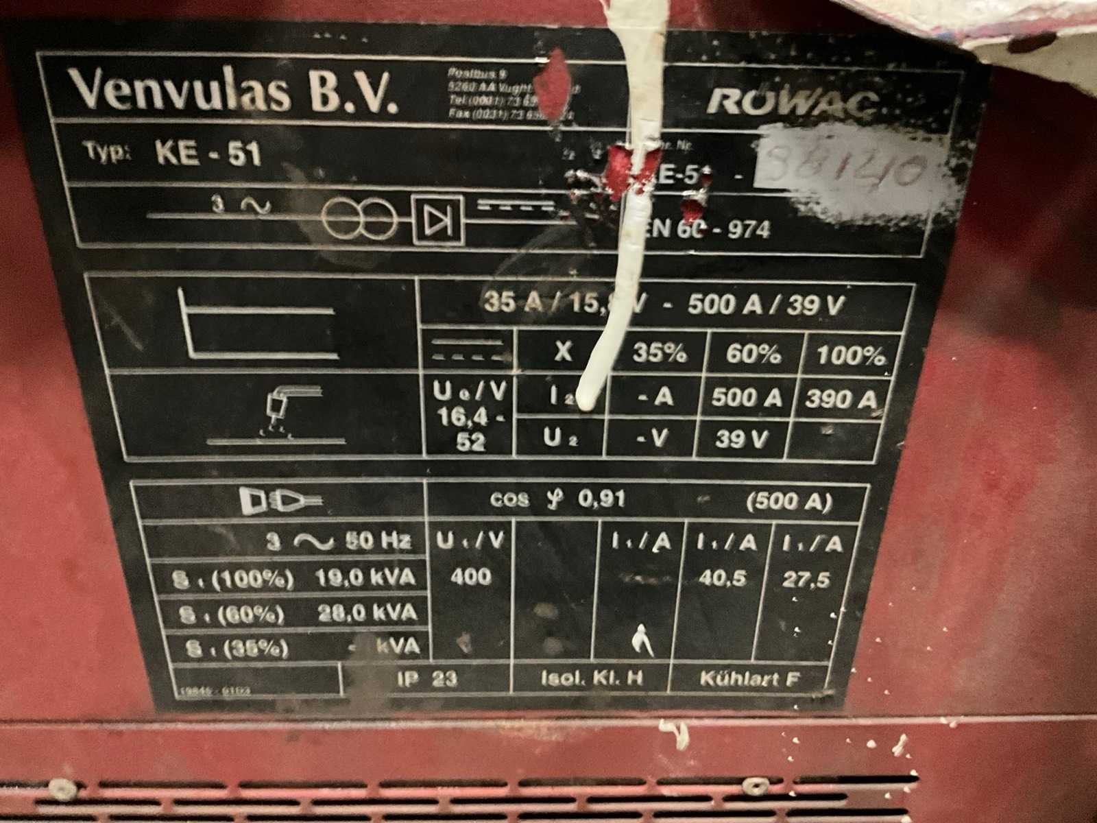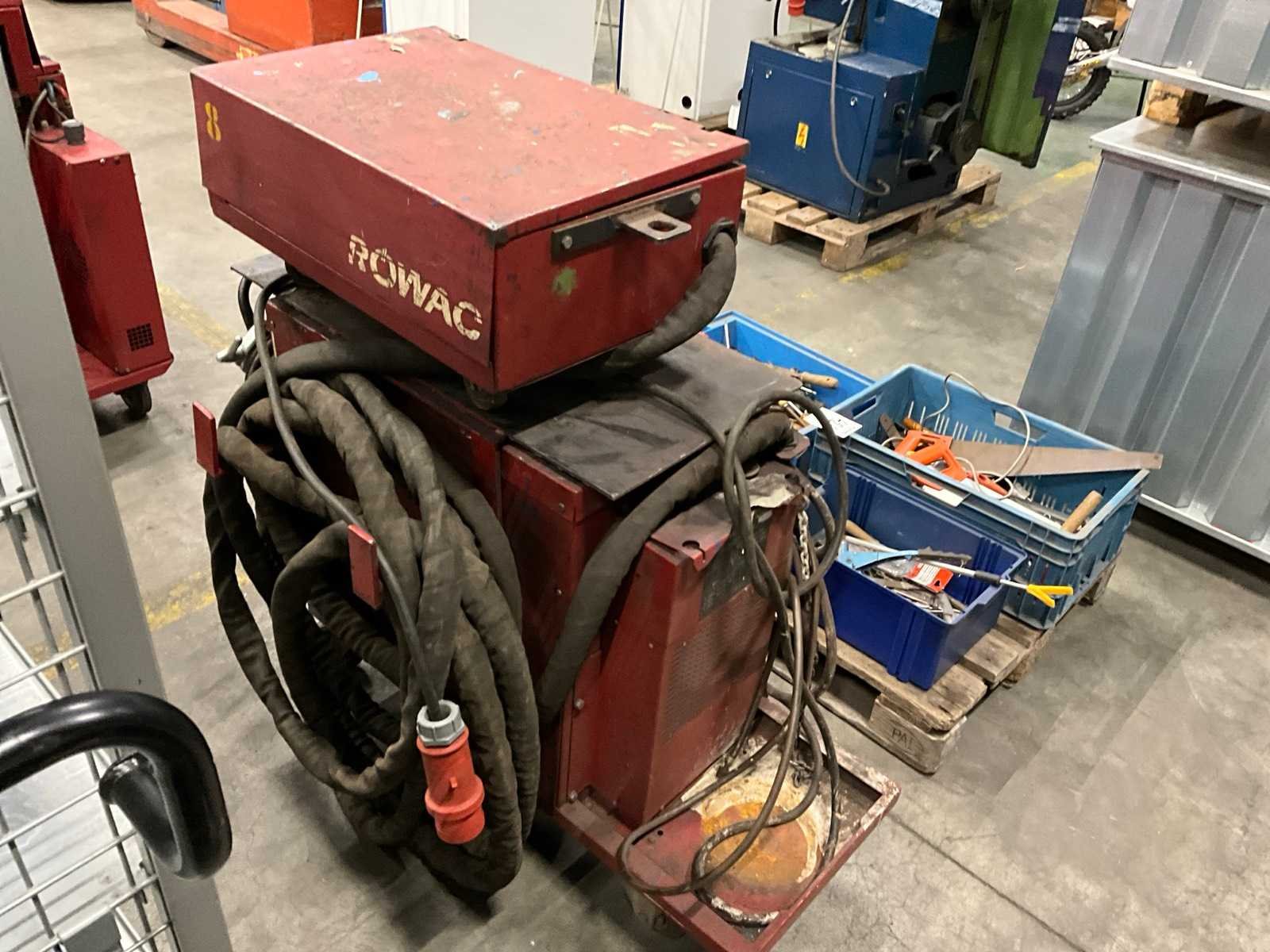 Waterkoeling torch, aardklem, geen torch Merk: Rowac Type: Venvulas KS-33 Serienummer: 58140 Max. lasvermogen: 500A Aansluiting: 400V Draadaanvoerunit: true