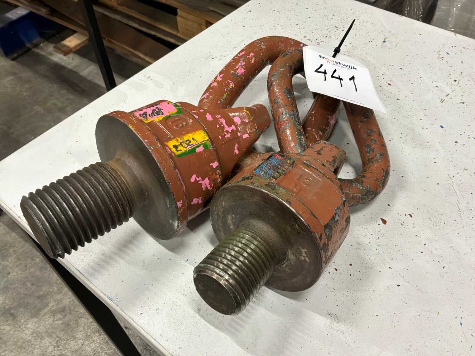 Let op! 2 verschillende maten. Maten klein hijsoog: 325x115x115 Merk: Verschillende Type: Hijs ogen Bouwjaar: 2011 Afmeting l: 370mm Afmeting b: 120mm Afmeting h: 120mm