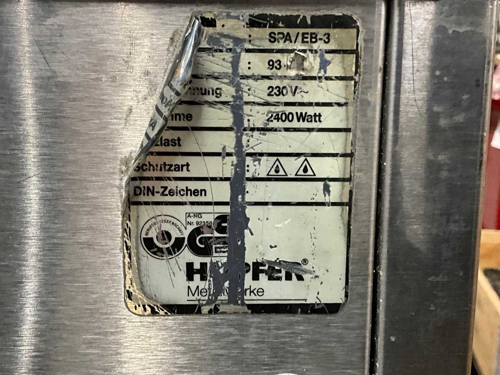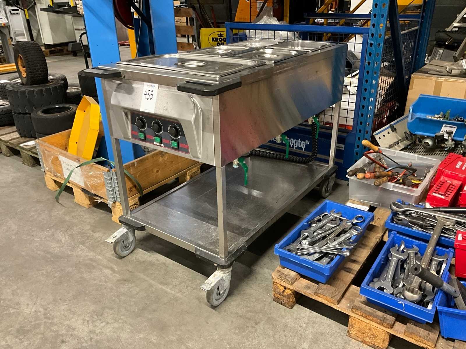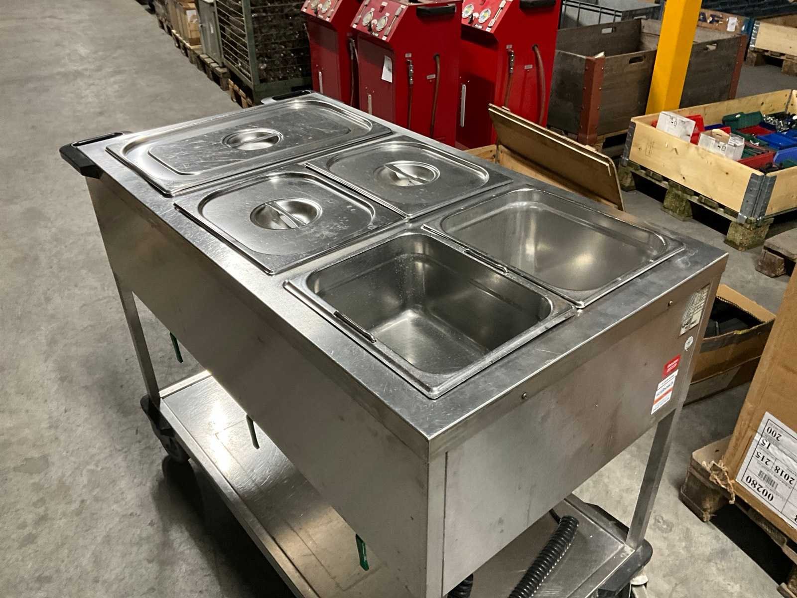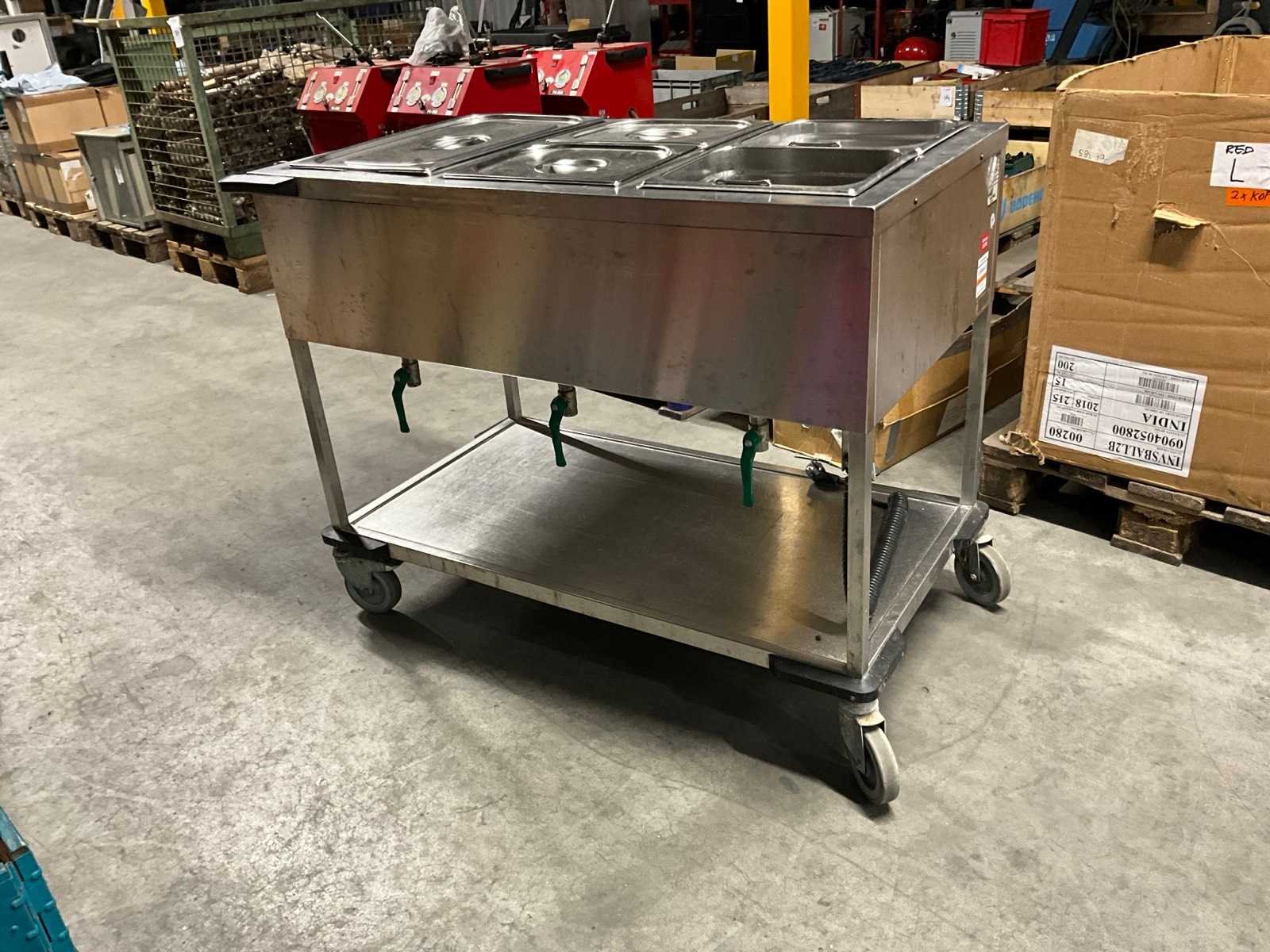 Roestvast staal; 3x GN 1/1; voorzien van 2x bak GN 1/1; 2x bak 1/2 GN; 1x deksel GN 1/1; 2x deksel GN 1/2; 3 temperatuurzones; 3x aftapkraan; rubber stootranden; 2400 Watt; Merk: Hupfer Type: SPA EB3 Regelbare thermostaat: true Aansluiting: 230V