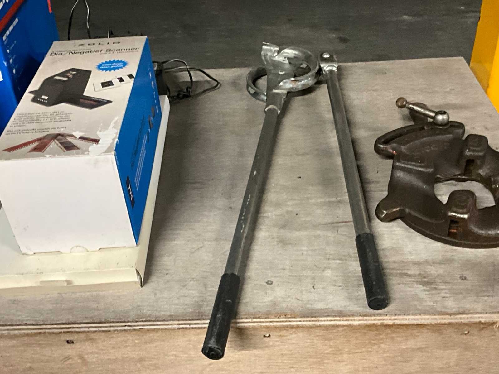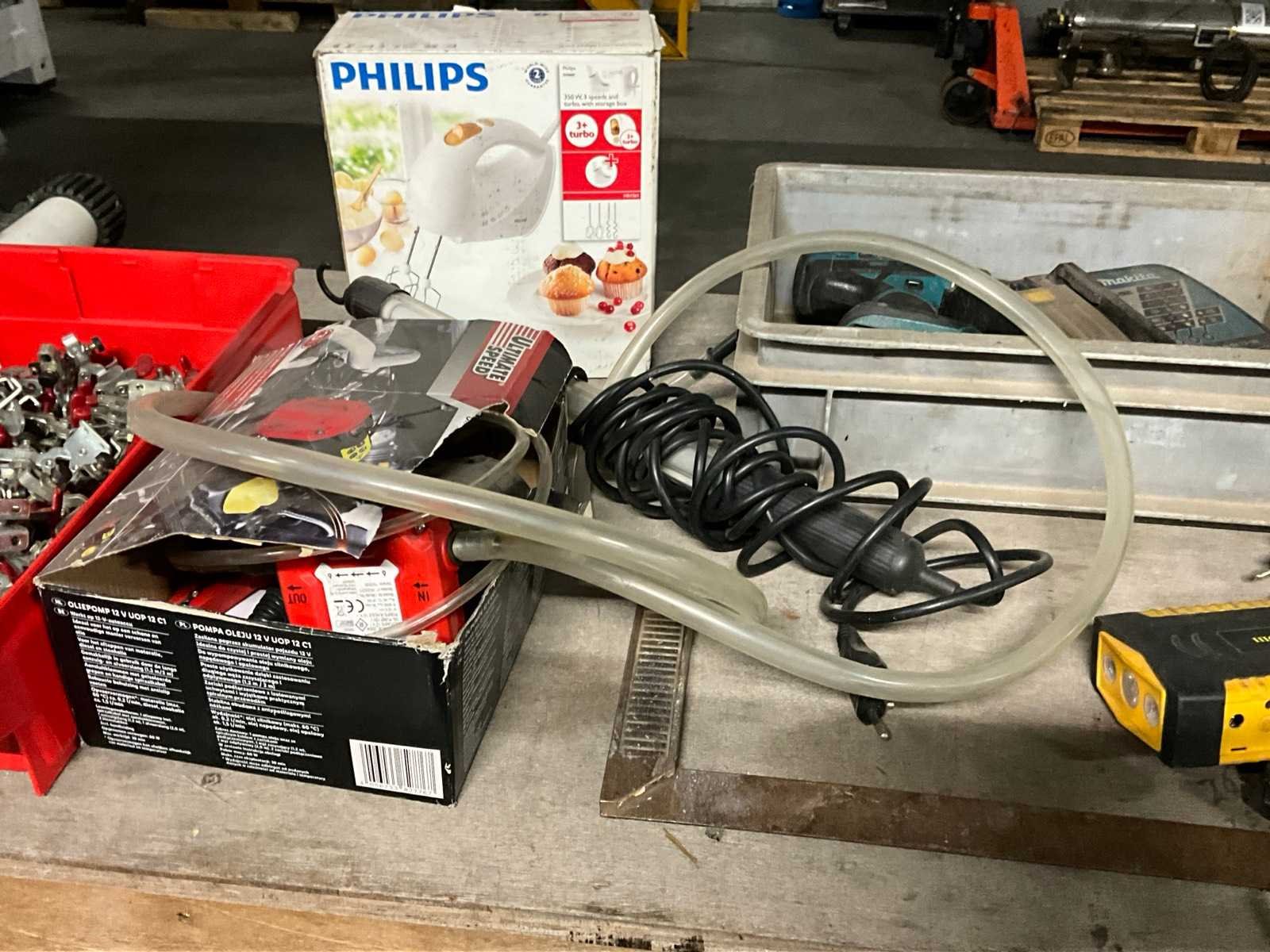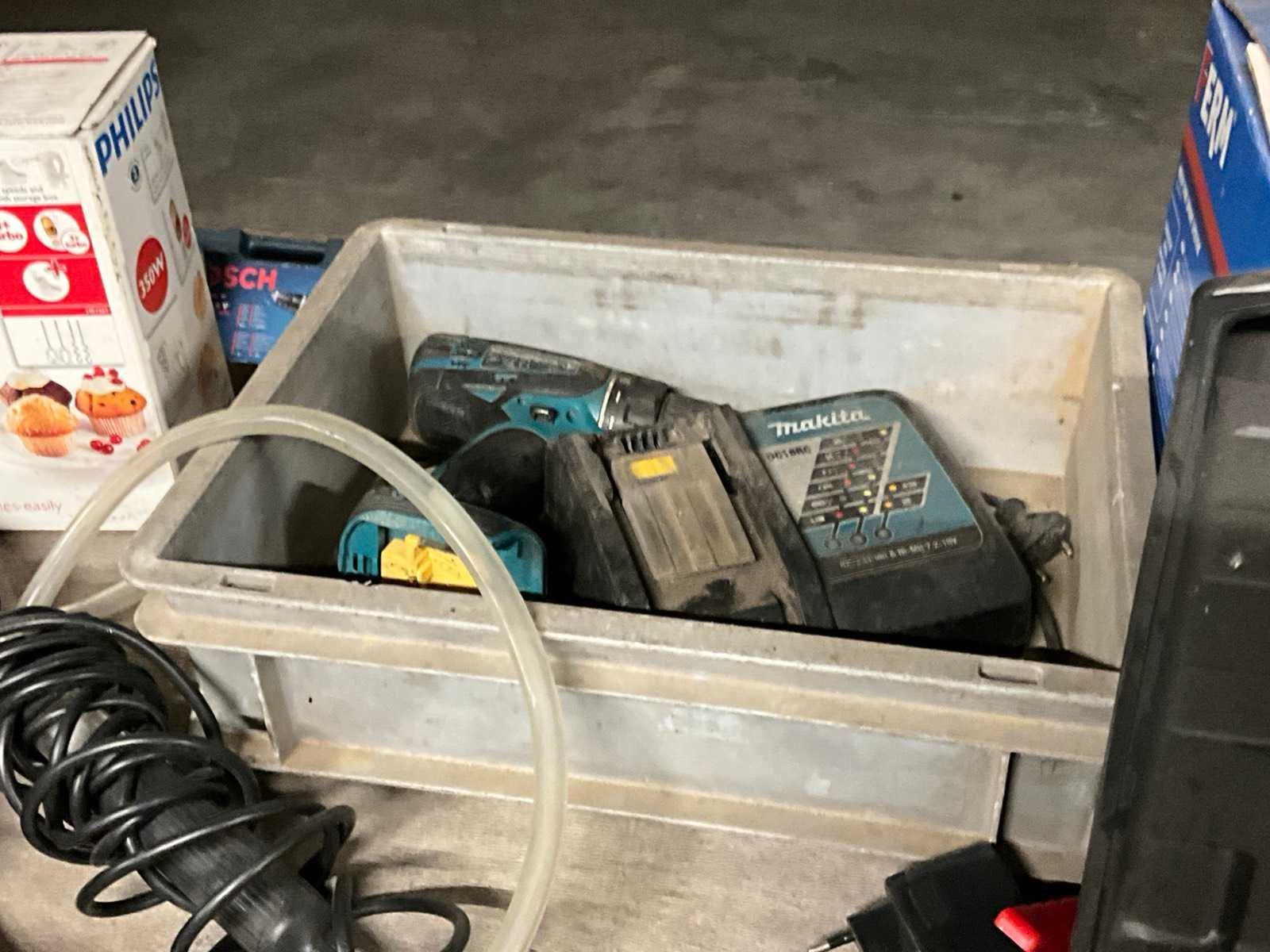 Waaronder pijpenbuiger; Ridgid pijpklem; Zolid dia scanner; schroefmachine zonder accu; Makita schroefmachine zonder accu inclusief acculader; vloeistofpomp; klemmen; cyclotron; looplamp;
