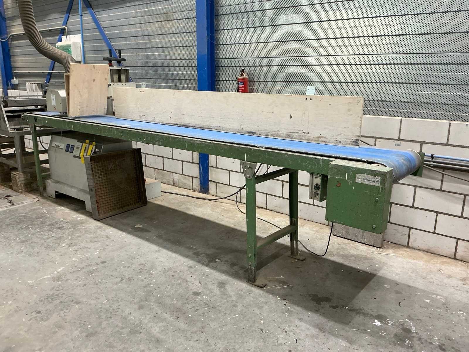 Elektrisch aangedreven; transportband breedte 500 mm; in hoogte verstelbaar; doorvoersnelheid regelbaar Merk: Trivec Type: TRV 450 C Bouwjaar: 2016 Werkbreedte: 450mm Aansluiting: 400V Afmeting l: 4000mm Afmeting b: 700mm Afmeting h: 1650mm