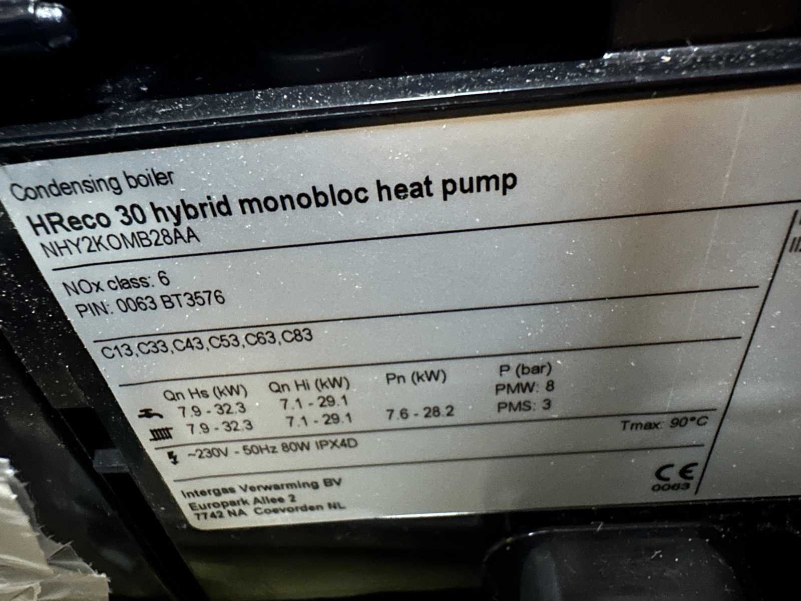 Merk: Intergas Type: HReco 30 hybrid HR: true Aansluiting: 230V