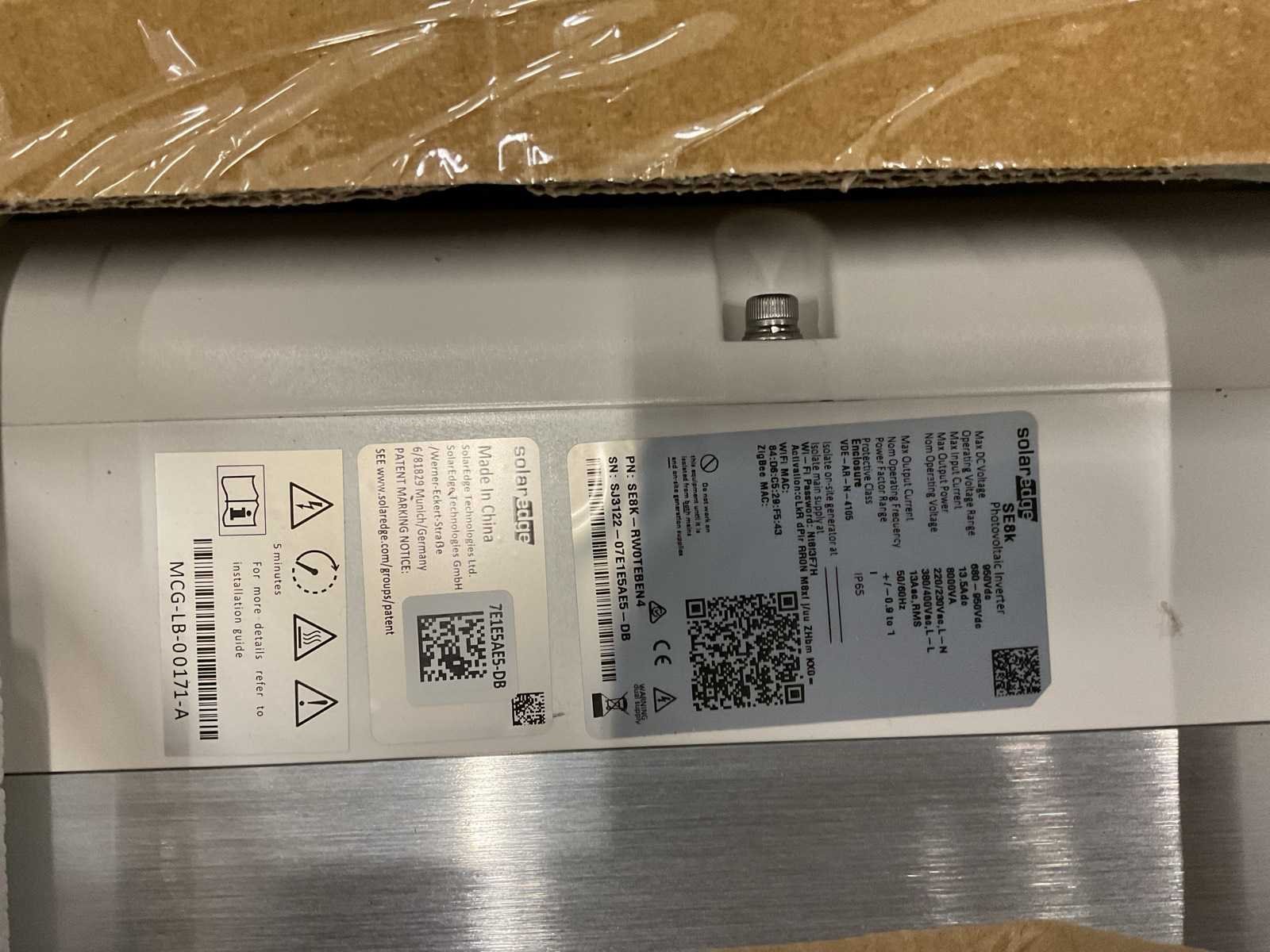 Merk: Solar Edge Type: SE8K-RW0TEBEN4