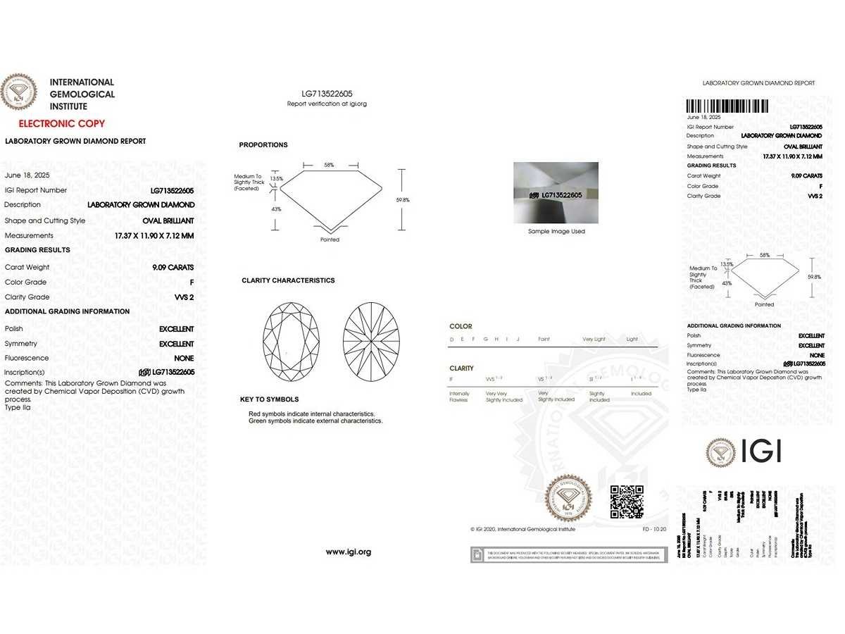 Exclusieve 18K witgouden ring Ringmaat - 54 EU / 14 IT / 6.75 US Rapportnummer IGI: LG713522605 Totaal karaatgewicht - 9,09 Ovale briljant Gewicht van de hoofdsteen: 9,09 CT Kleur: F Helderheid: VVS2 Snede: uitstekend Symmetrie: uitstekend Totale ringgewicht: 5,43 gram Bezichtiging op afspraak Materiaal: Witgoud Ringmaat : 54 Certificaat: Ja Lage schatting: 23900€