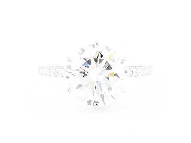 Metaal: 14K Witgoud Totaal gewicht diamant: 4,04 - Vorm: Rond Briljant - Certificaatnummer: 614339700 - Lab: Internationaal Gemologisch Instituut - Duidelijkheid: VS 2 Kleur: F Omringende diamanten : - Karaatgewicht: 0,14 - Aantal stuks: 14 Bezichtiging op afspraak Materiaal: Wit gouden Ringmaat : 55 Certificaat: Ja Lage schatting: 8100€