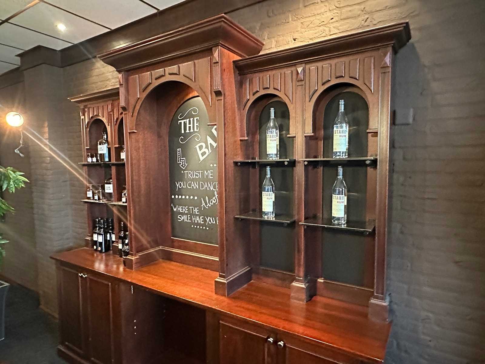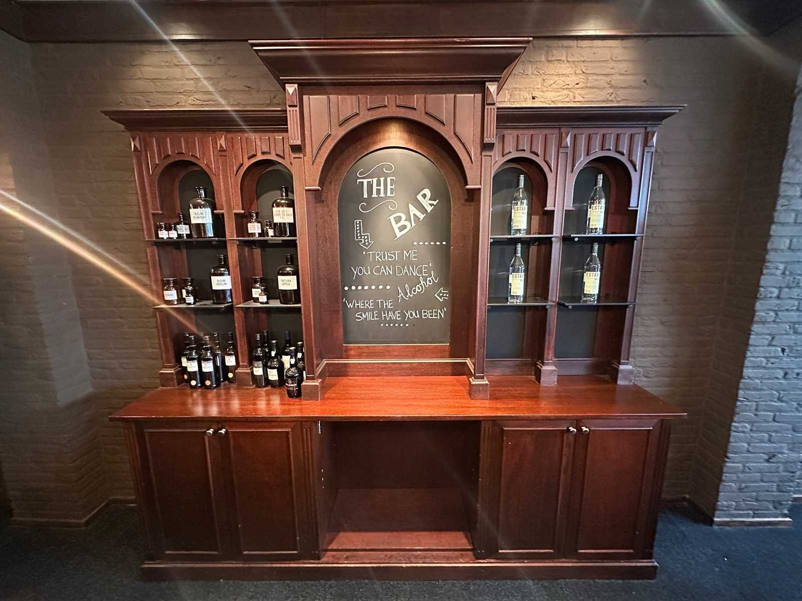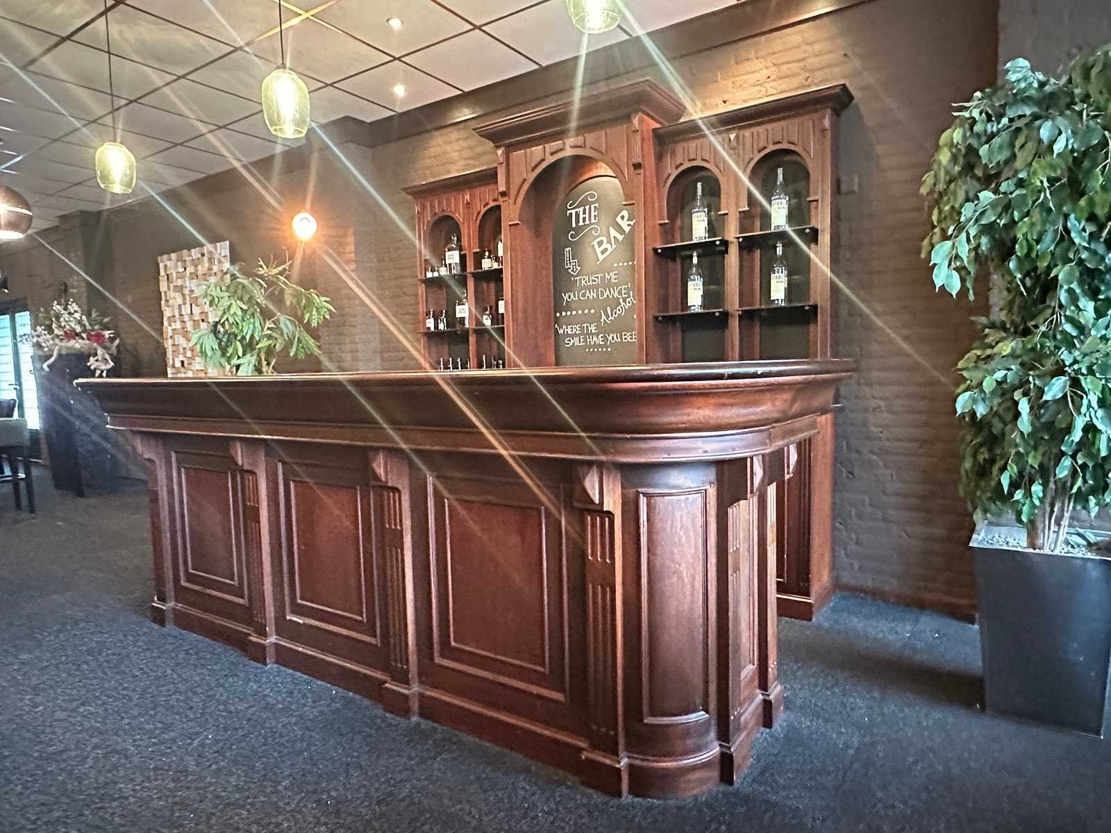 Klassieke engelse houten bar met achterkast