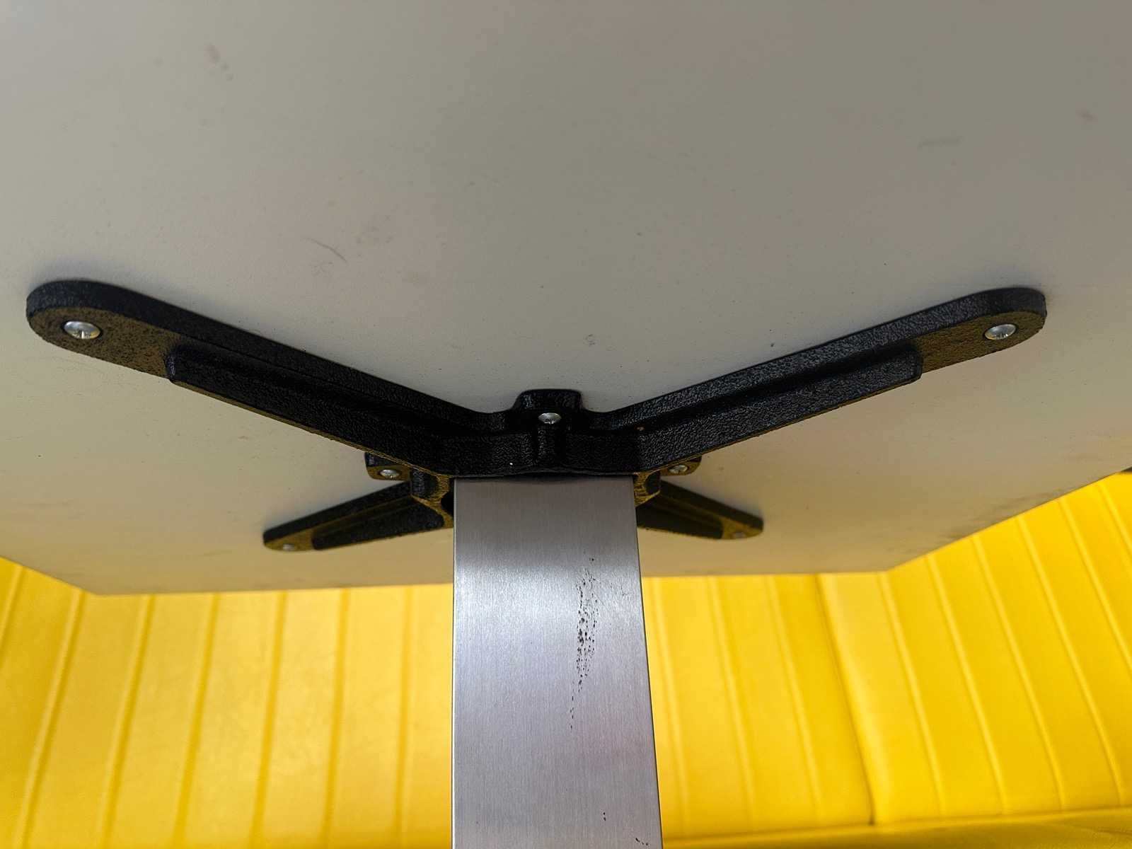 Deze set bestaat uit twee wandbanken, 2 vierkante tafels en 2 hockers. De afmeting van de bank is 135x70x170 cm (BxDxH), de tafel is 70x70x75 cm (LxBxH), de hockers hebben een afmeting van 42x42x48 cm (LxBxH).