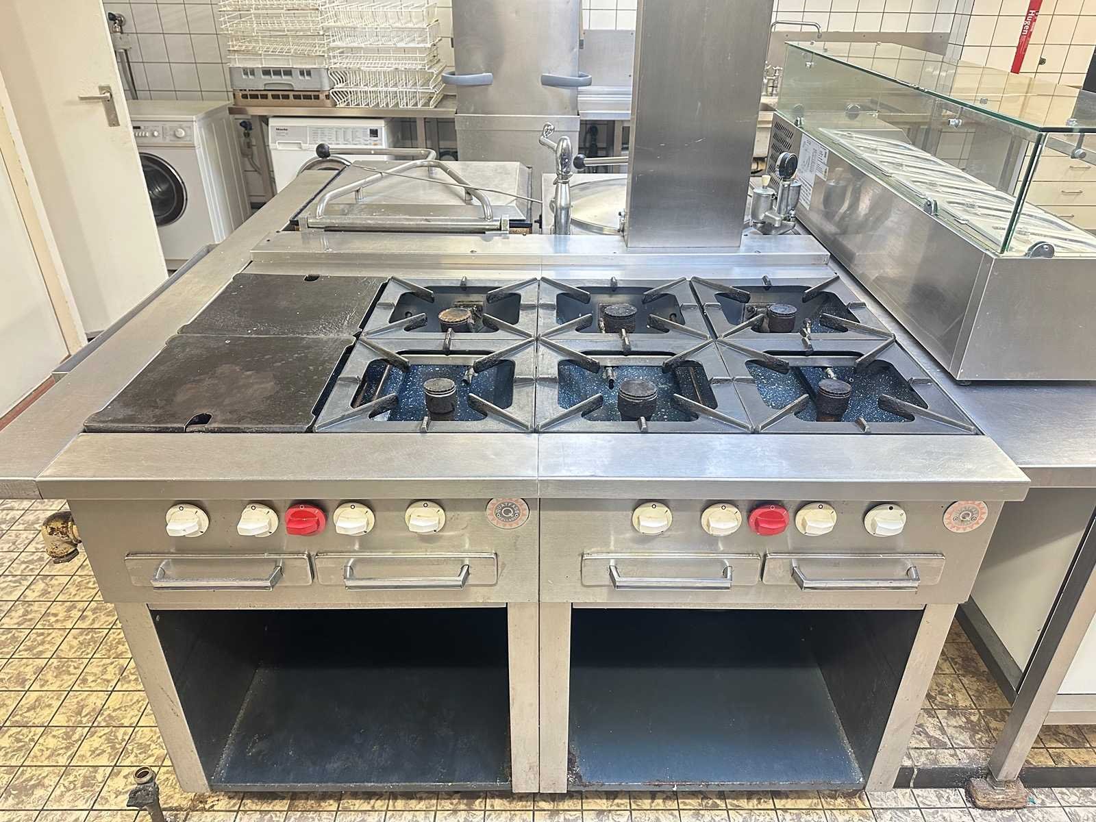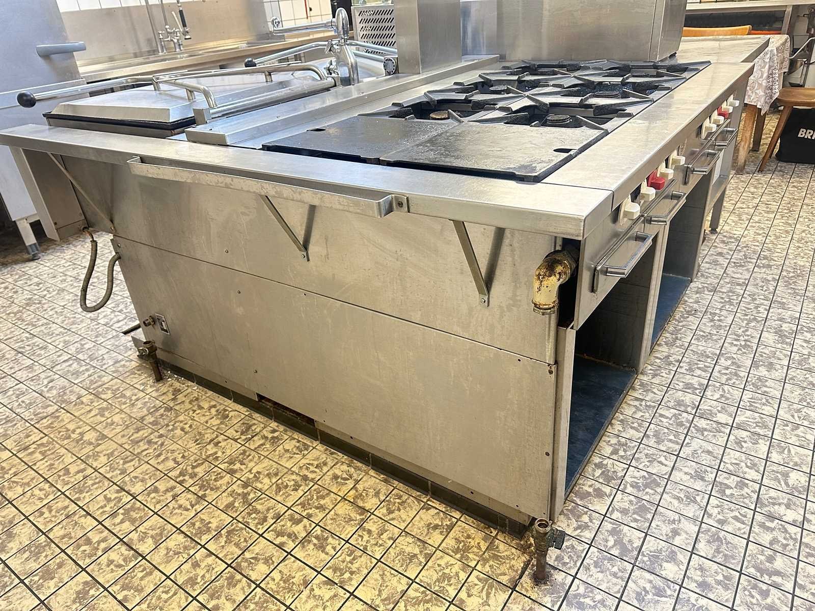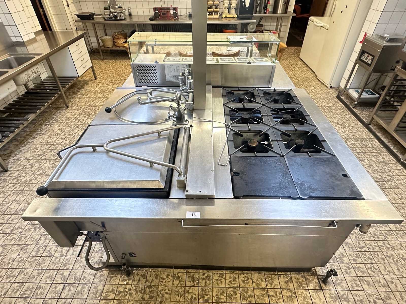 Dit kookeiland bestaat uit een kookketel, kantelbare braadslede, 6 gaspitten en warmhoudplaten. Lengte: 154mm Breedte: 192mm Hoogte: 95mm Materiaal: RVS
