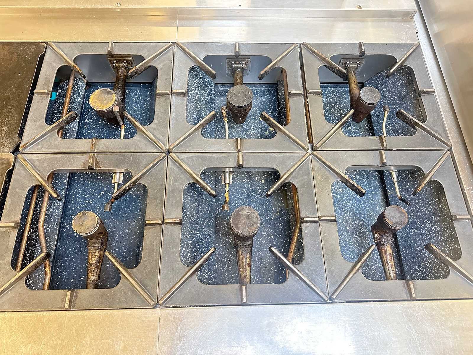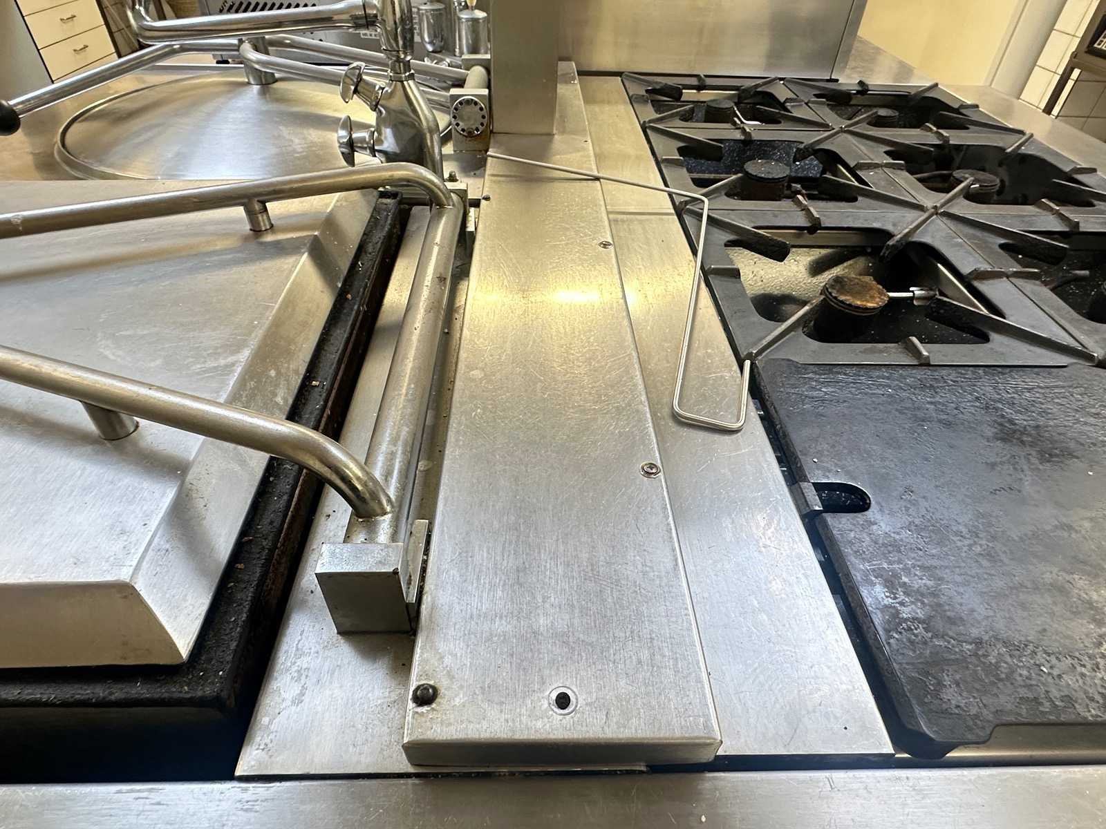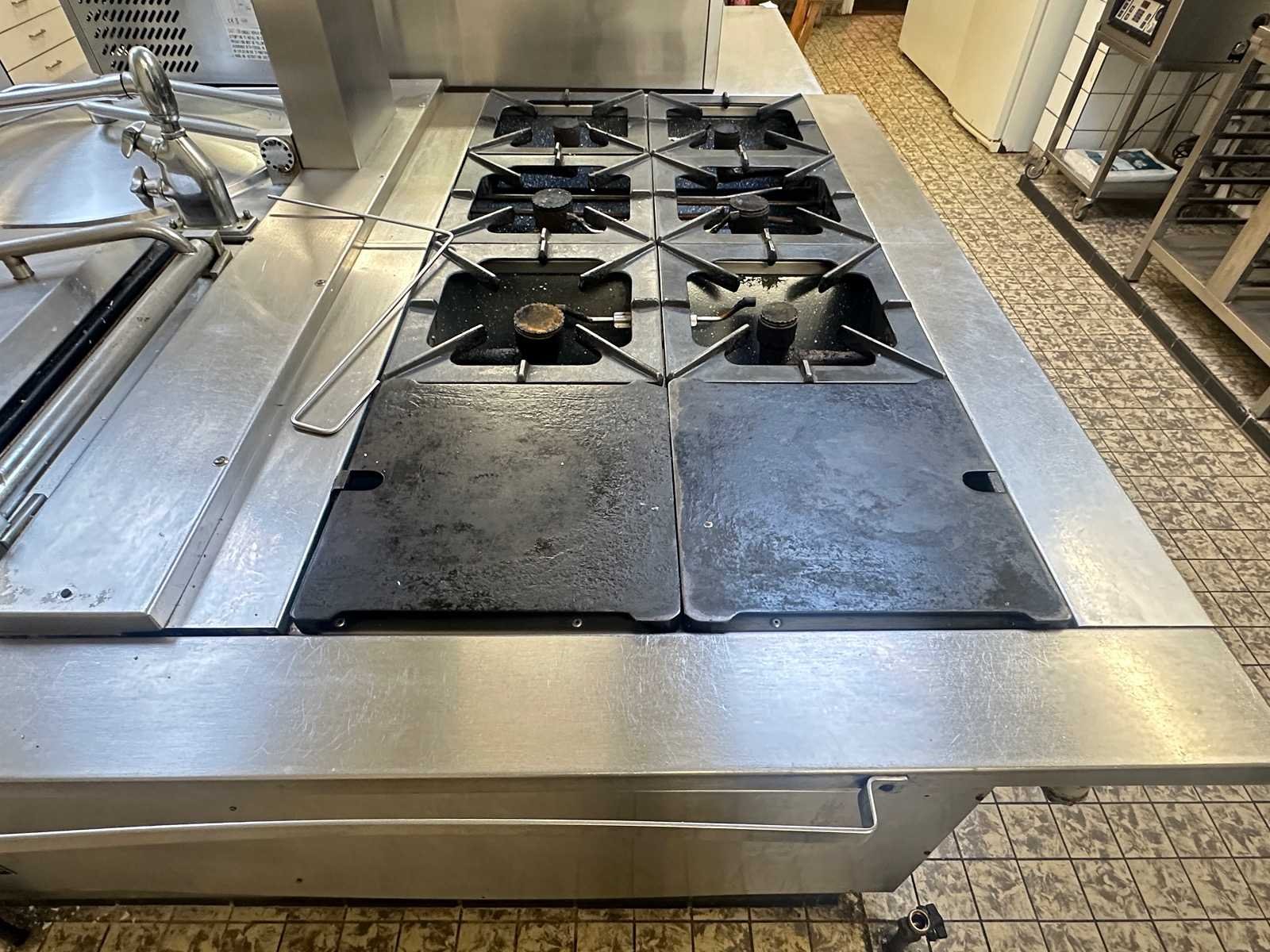 Dit kookeiland bestaat uit een kookketel, kantelbare braadslede, 6 gaspitten en warmhoudplaten. Lengte: 154mm Breedte: 192mm Hoogte: 95mm Materiaal: RVS