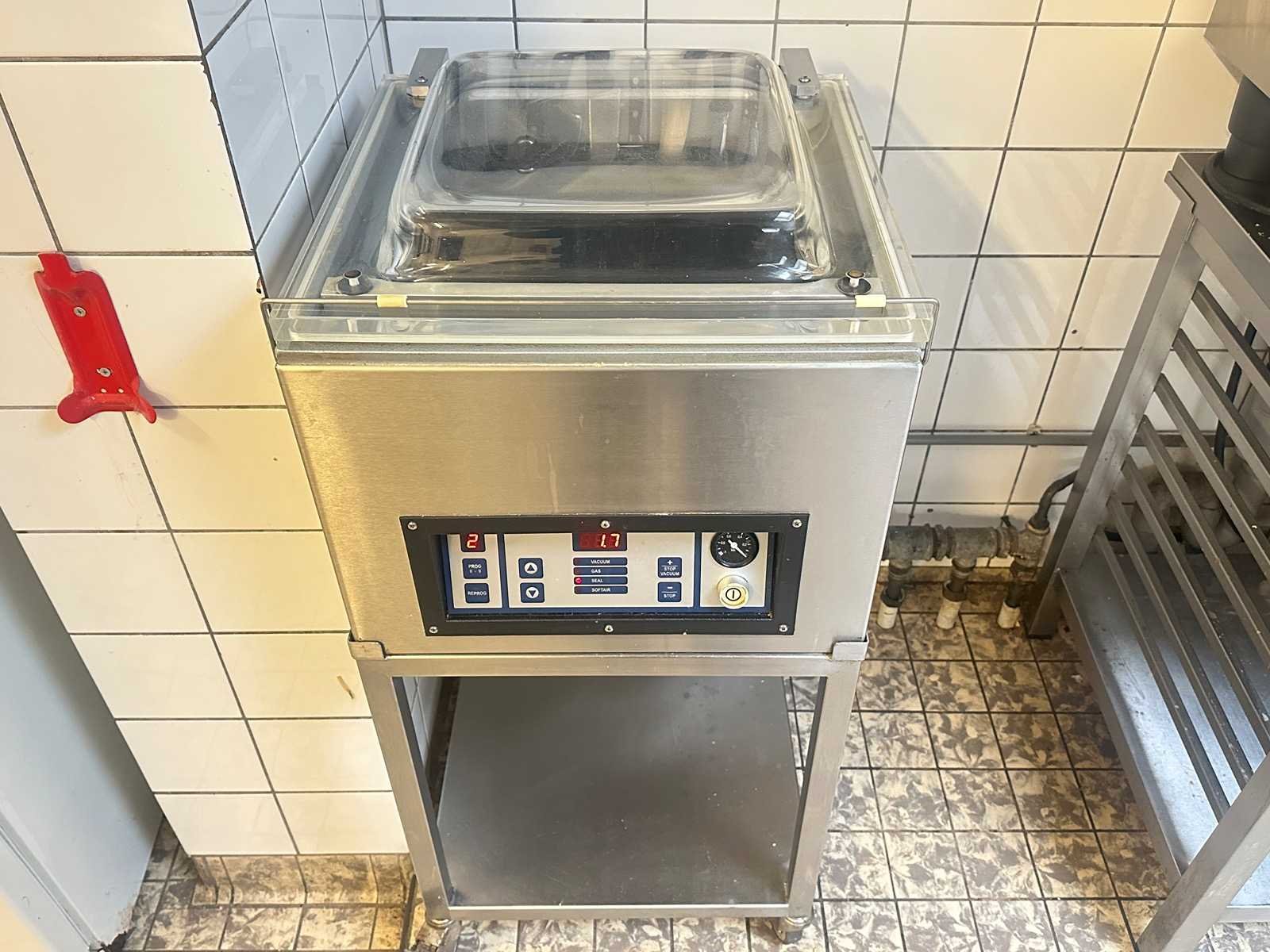 Deze Henkelman tafelmodel vacuümmachine is voorzien van een grote kamer. Het is een machine die uitermate geschikt is voor de slagerij, kaaswinkel of restaurant. Inclusief pak vacuüm zakken. Merk: Henkelmann Type: 200A Totale afmeting L: 480mm Totale afmeting Breedte: 520mm Totale afmeting Hoogte: 1030mm Serienummer: 20209613 Eigen gewicht: 64kg Rvs: true Aansluiting: 230V