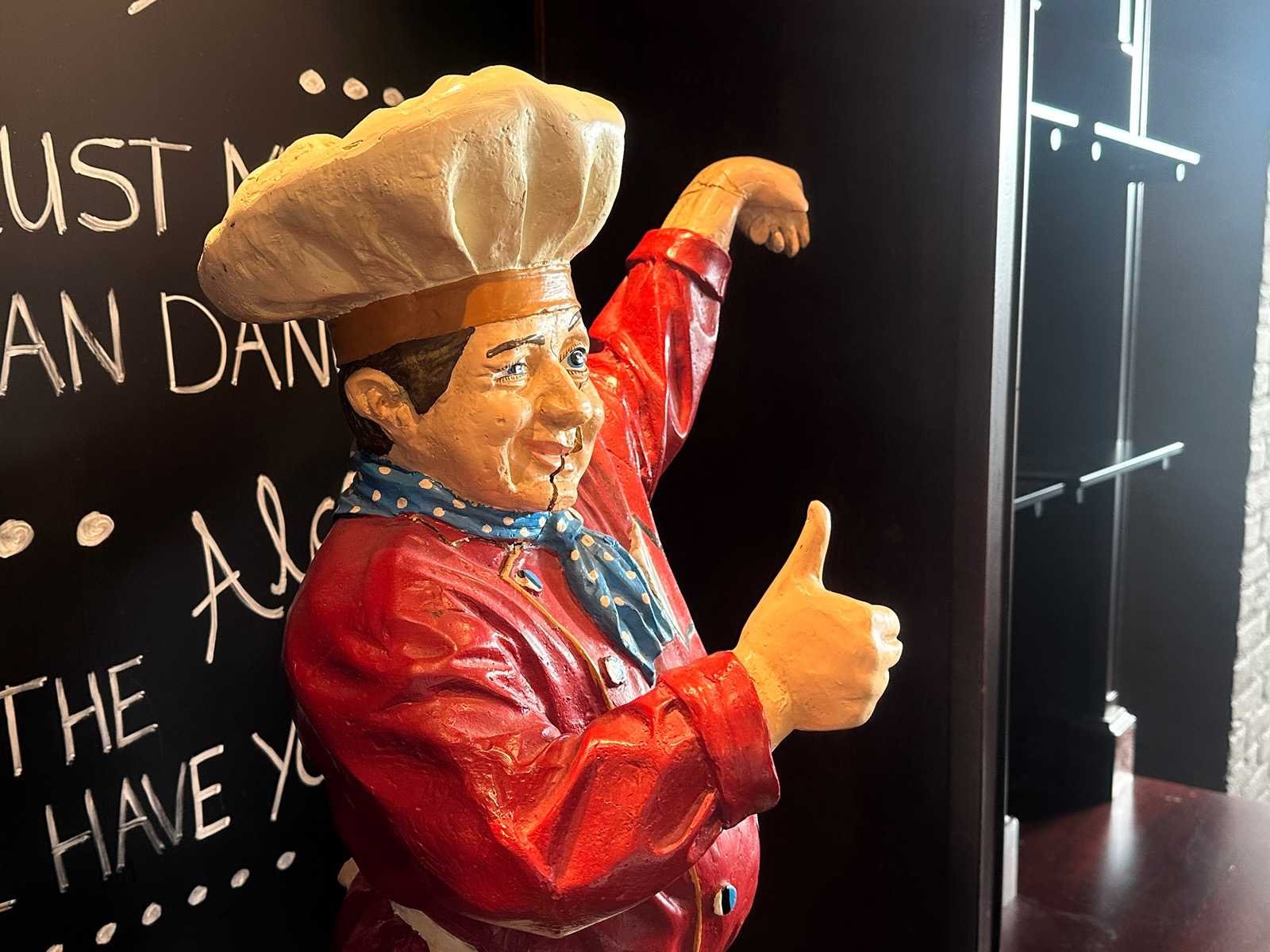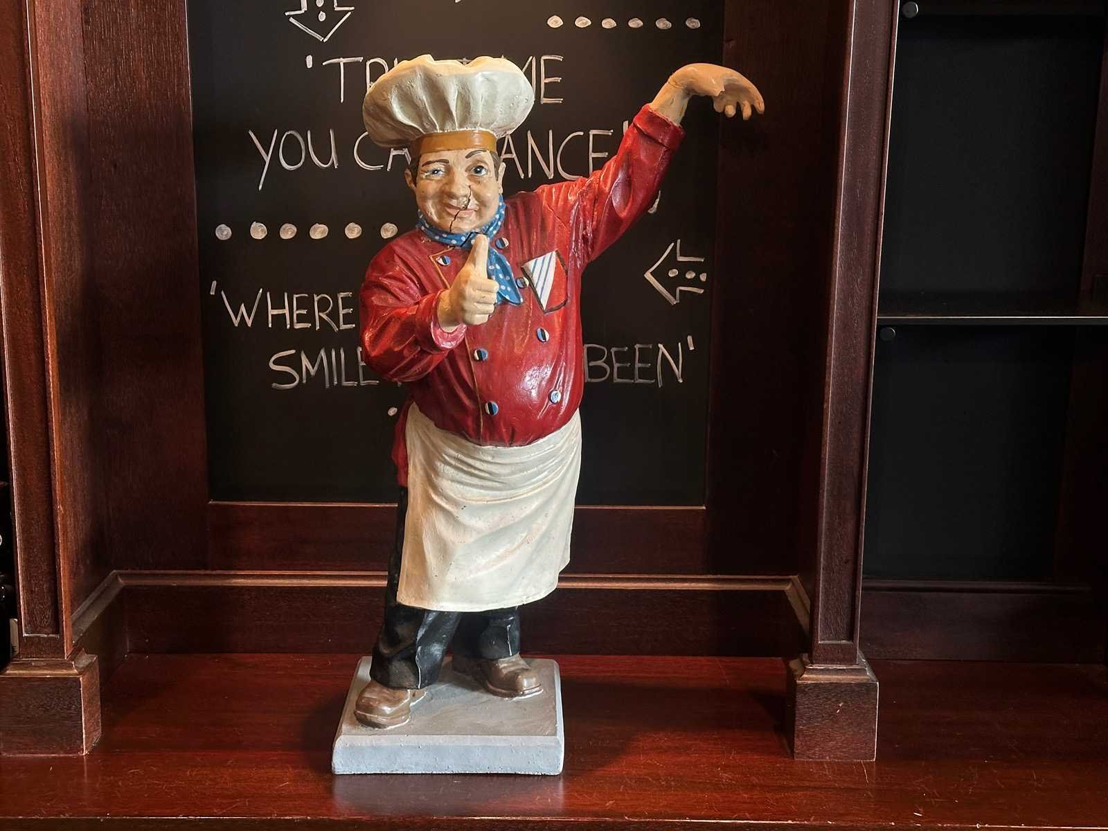 De kok heeft een scheur in zijn gezicht zoals goed zichtbaar op de foto's Kunststof: true Totale afmeting Hoogte: 75cm