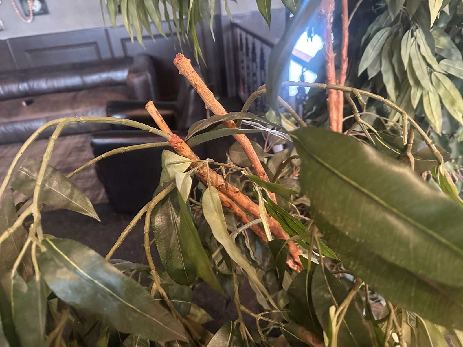 Deze kunst Ficus zit in een zware metalen pot met grind. Totale afmeting Hoogte: 190cm