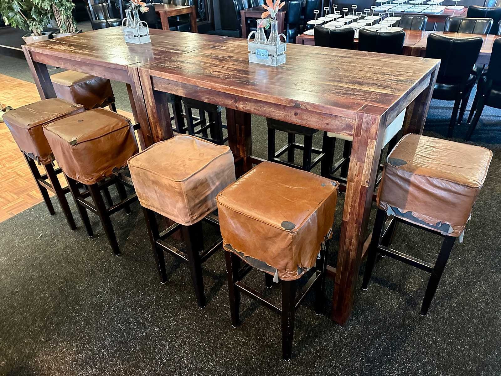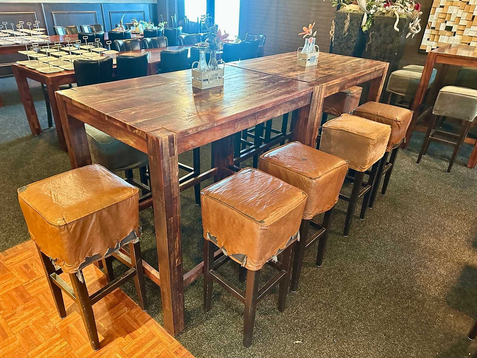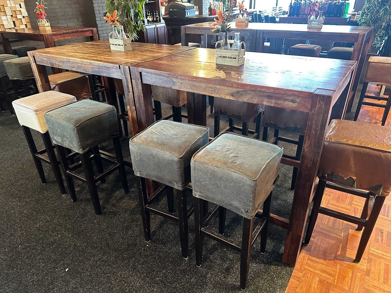 Afmeting van de kruk is 37x37x80 cm (LxDxH) De stoffering van de krukken is beschadigd. Totale afmeting L: 1200mm Totale afmeting Breedte: 810mm Totale afmeting Hoogte: 1110mm Materiaal: hout