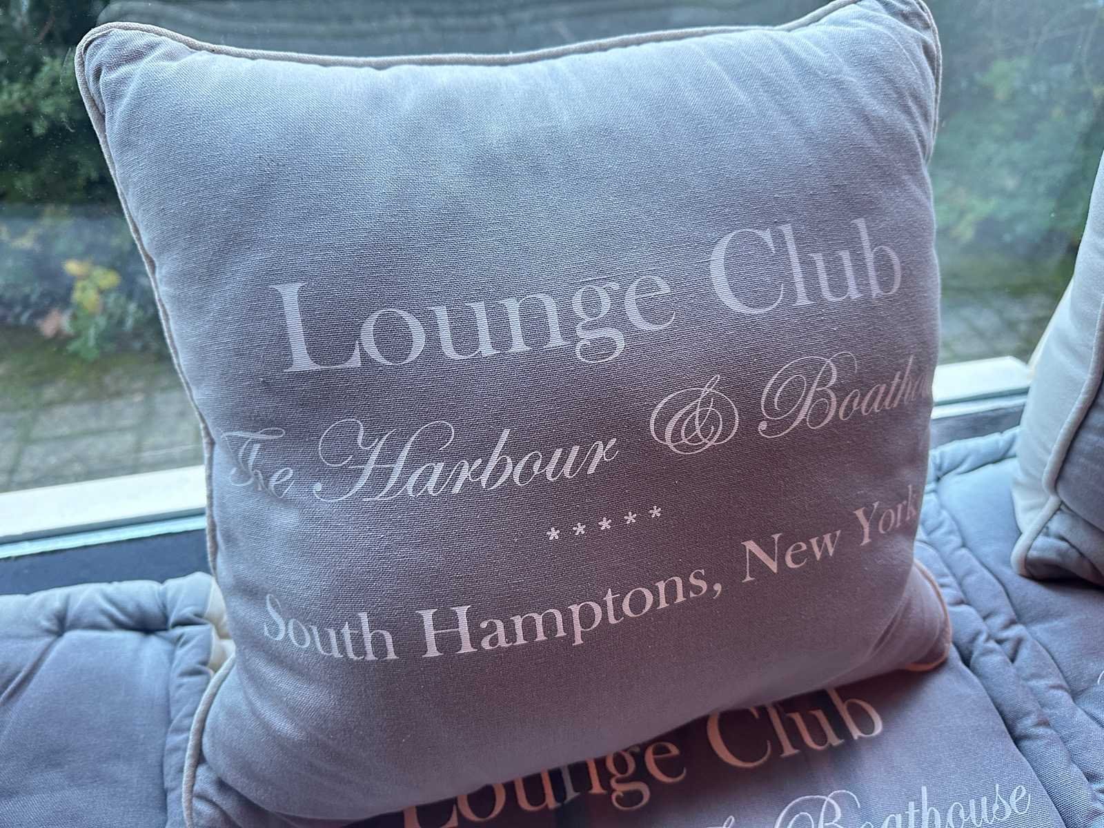 Deze set bestaat uit 15 zitkussens en 15 rugkussens. Een aantal kussens heeft beschadigingen.