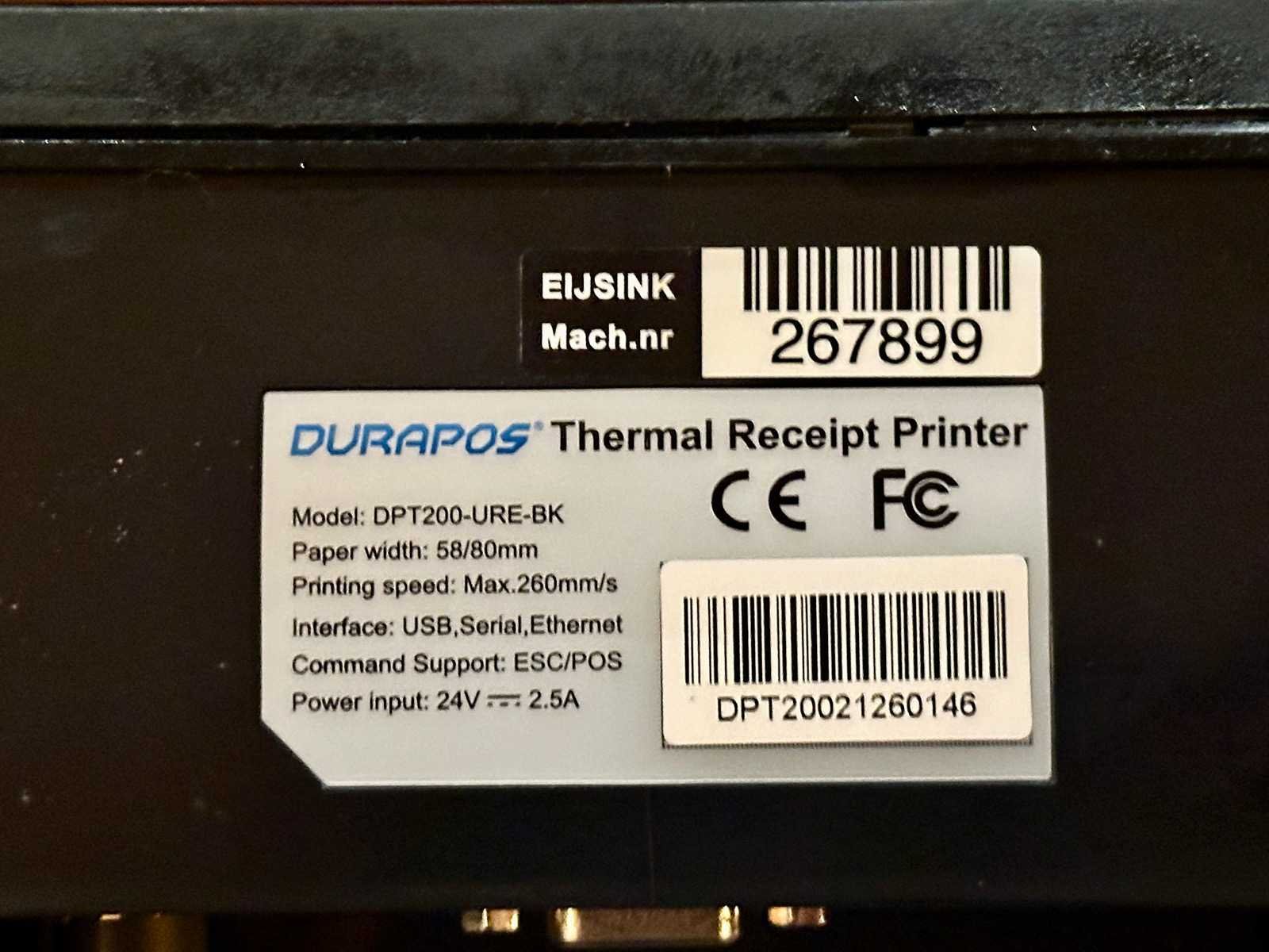 Inclusief een doos printerrollen. Merk: Durapos Type: DPT200 Aansluiting: 230V
