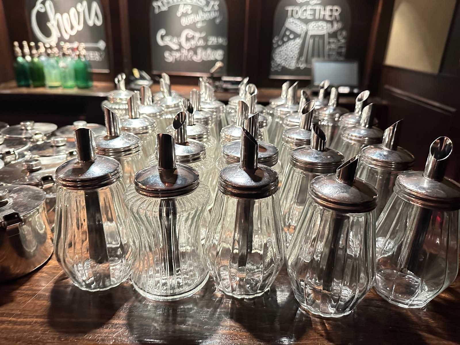 Deze partij bestaat uit 31 suikerstrooiers en 31 rvs suikerpotten met deksel.