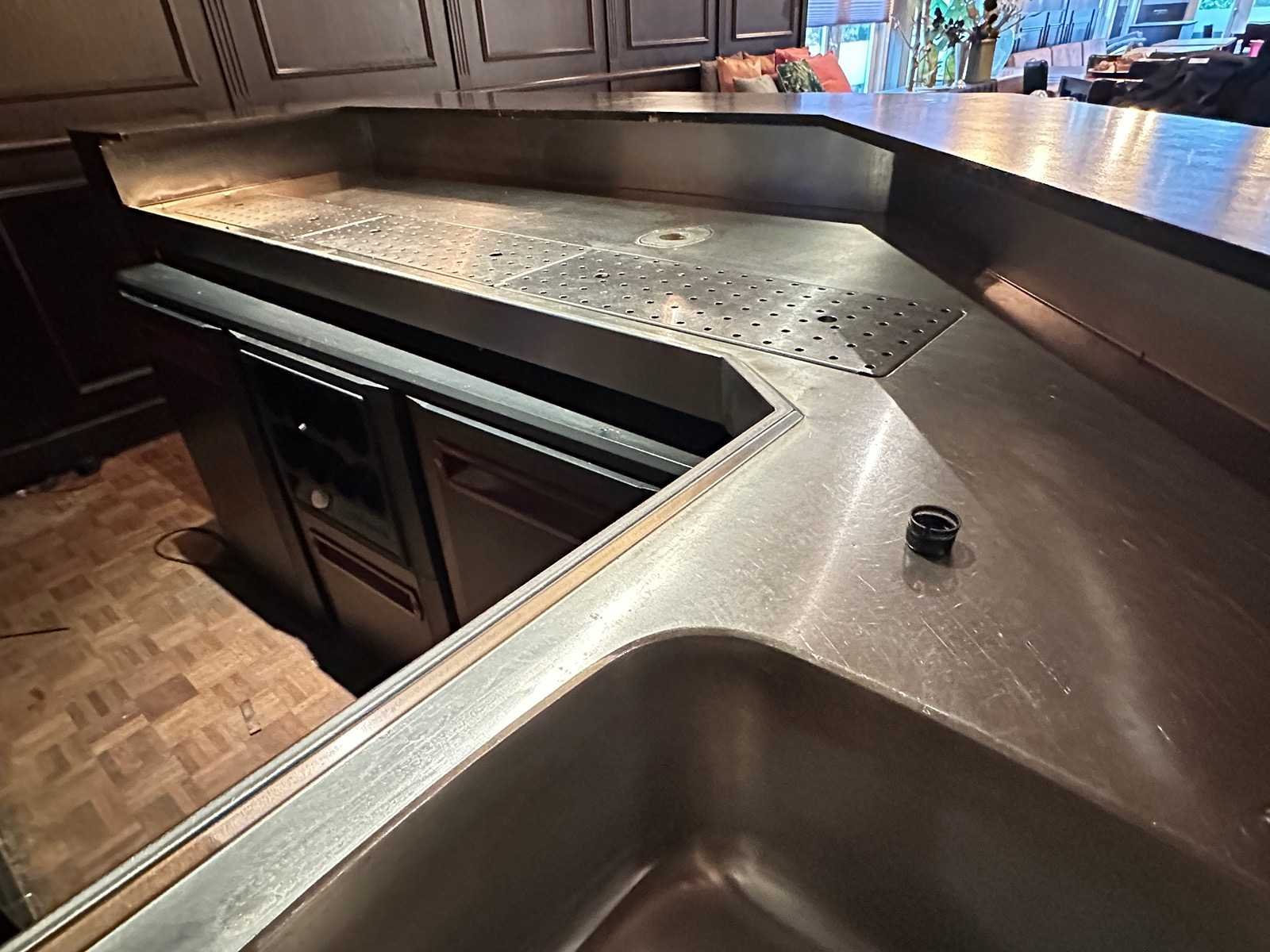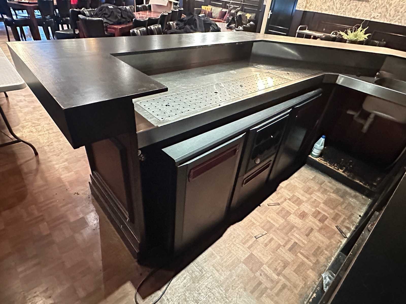 De afmeting van deze bar is 300x240x115 cm (BxDxH). De achterkast heeft een afmeting van 260x57x260 cm (BxDxH). Inclusief lekbladen en spoelbak. Exclusief inhoud, audio en Gamko koeling. Totale afmeting L: 3000mm Totale afmeting Breedte: 2400mm Totale afmeting Hoogte: 2600mm