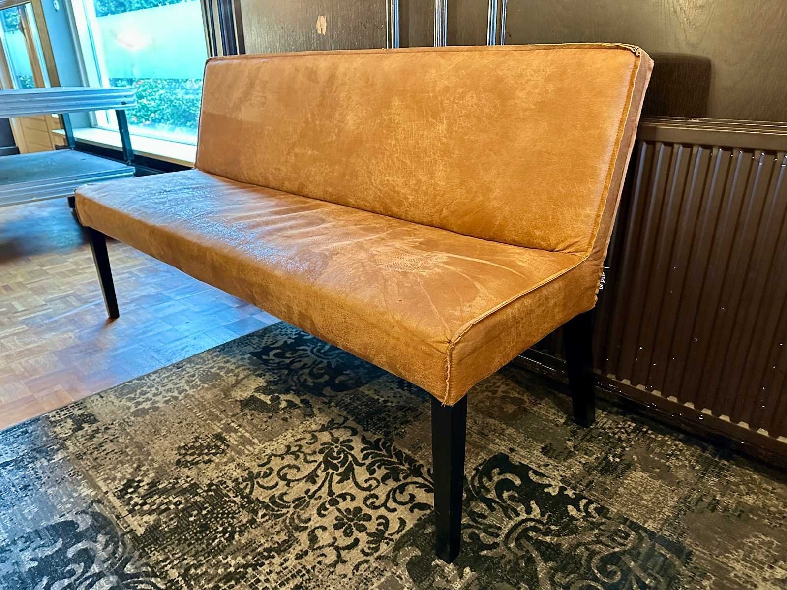 De zitting en rugleuning zijn voorzien van recycle leer in de kleur cognac. Poten zijn zwart gelakt hout. Merk: BePureHome Model: Rodeo Kleur: cognac Lengte: 156cm Breedte: 61cm Hoogte: 83cm Zithoogte: 45cm Materiaal: eco leer