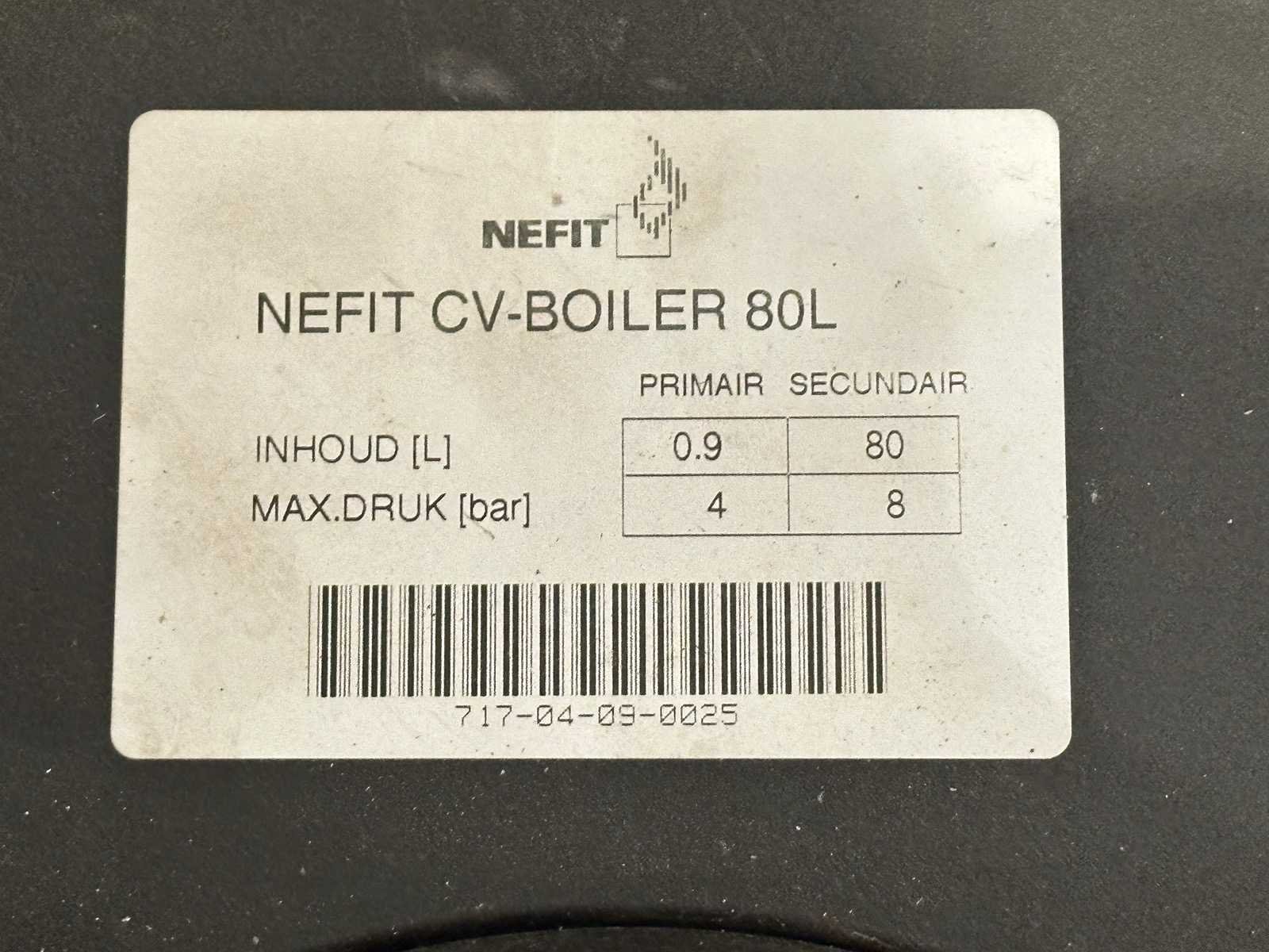 Merk: Nefit Type: 80 liter Maximale werkdruk: 8bar