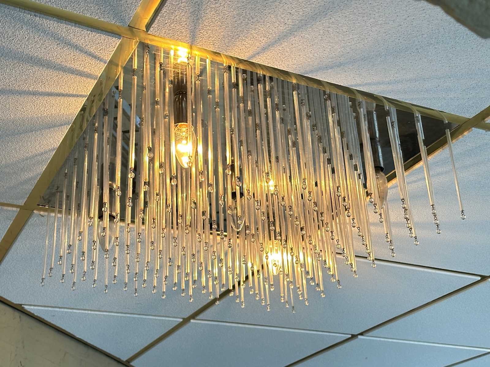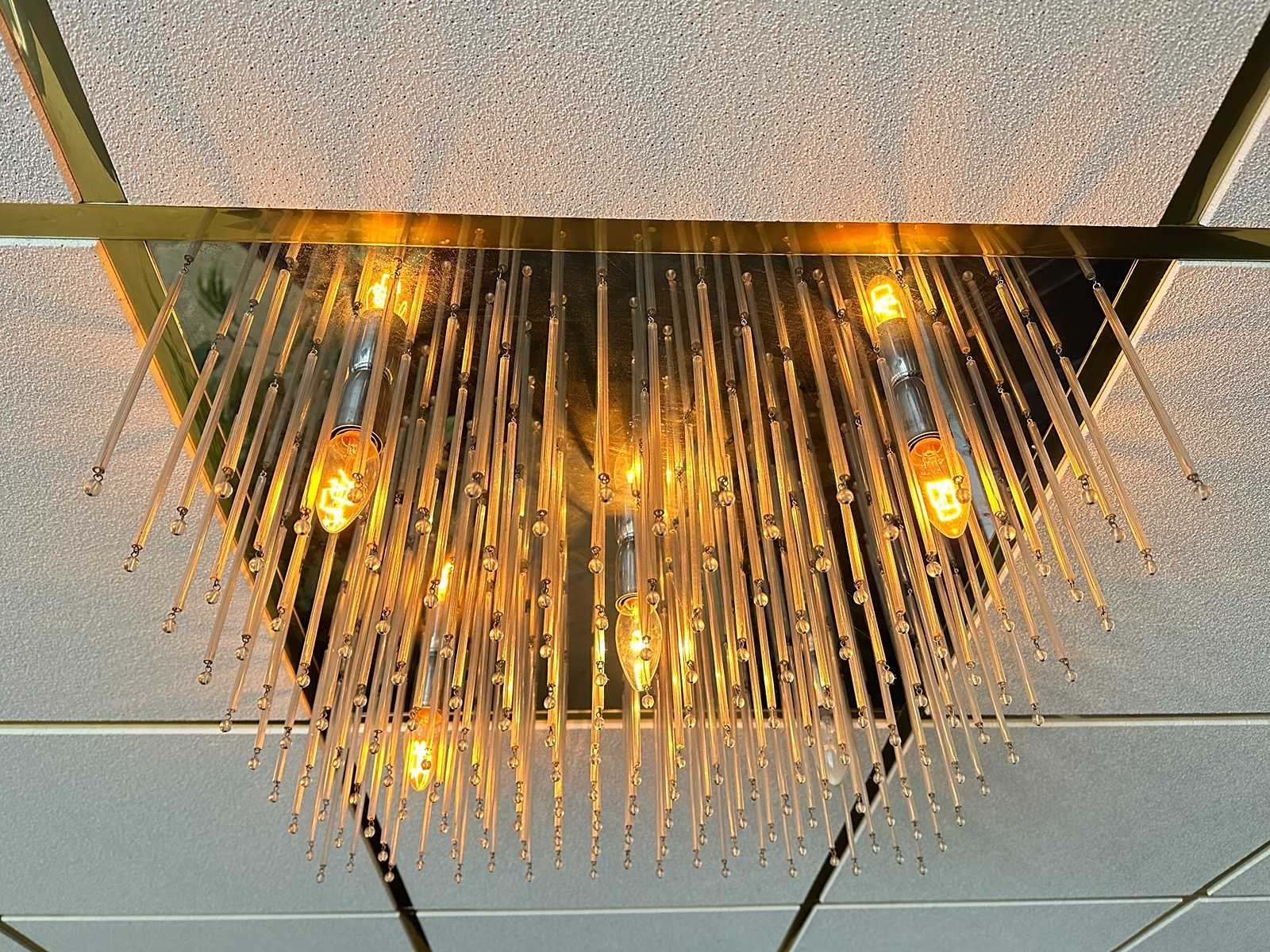 Plafond kroonluchter met glazen staafjes. Lengte: 57cm Breedte: 57cm Hoogte: 16cm