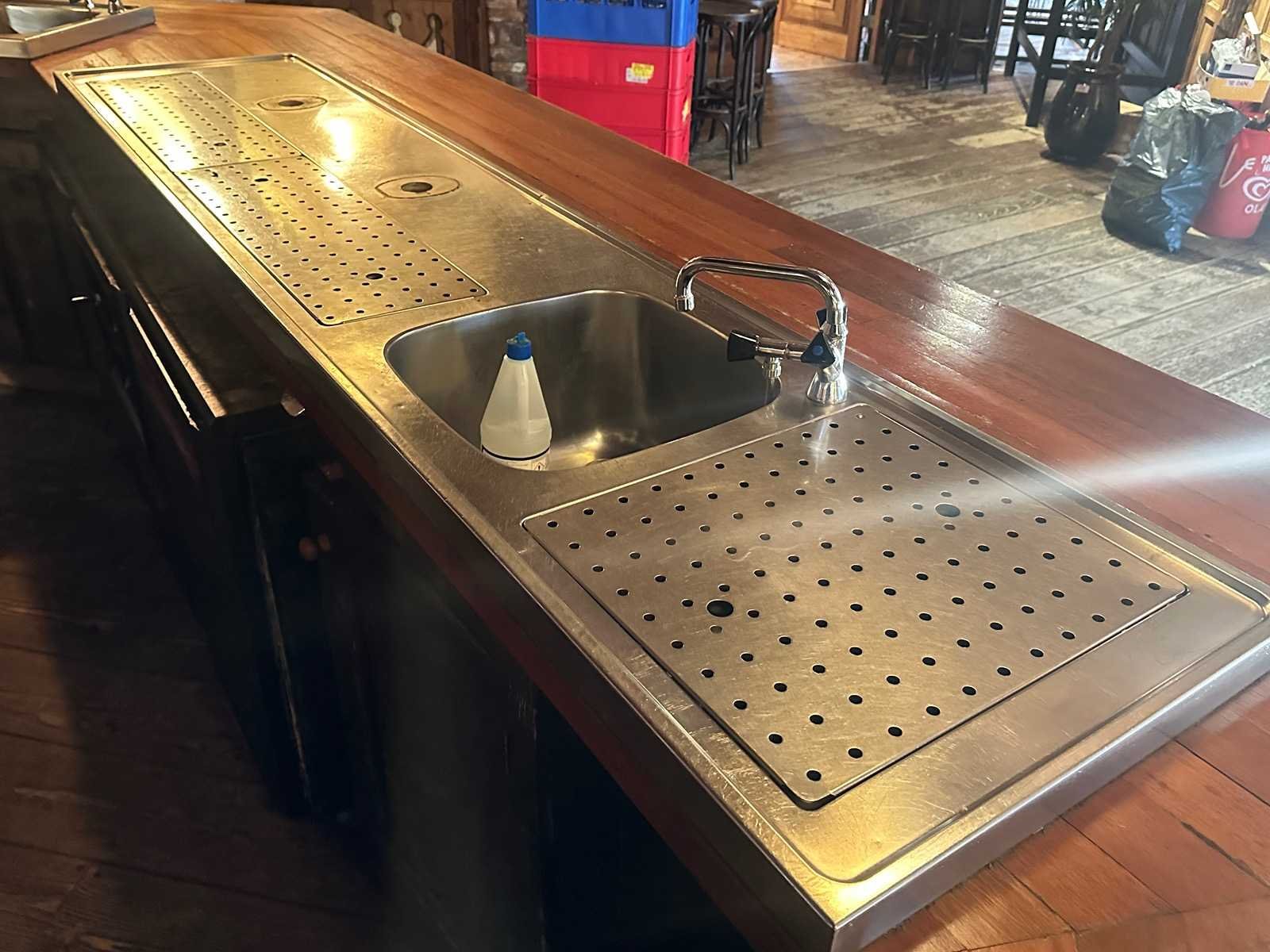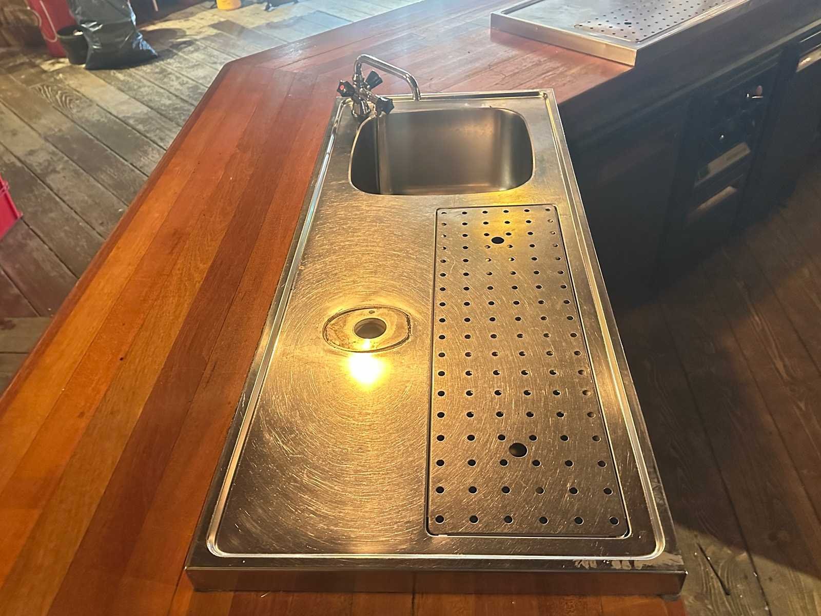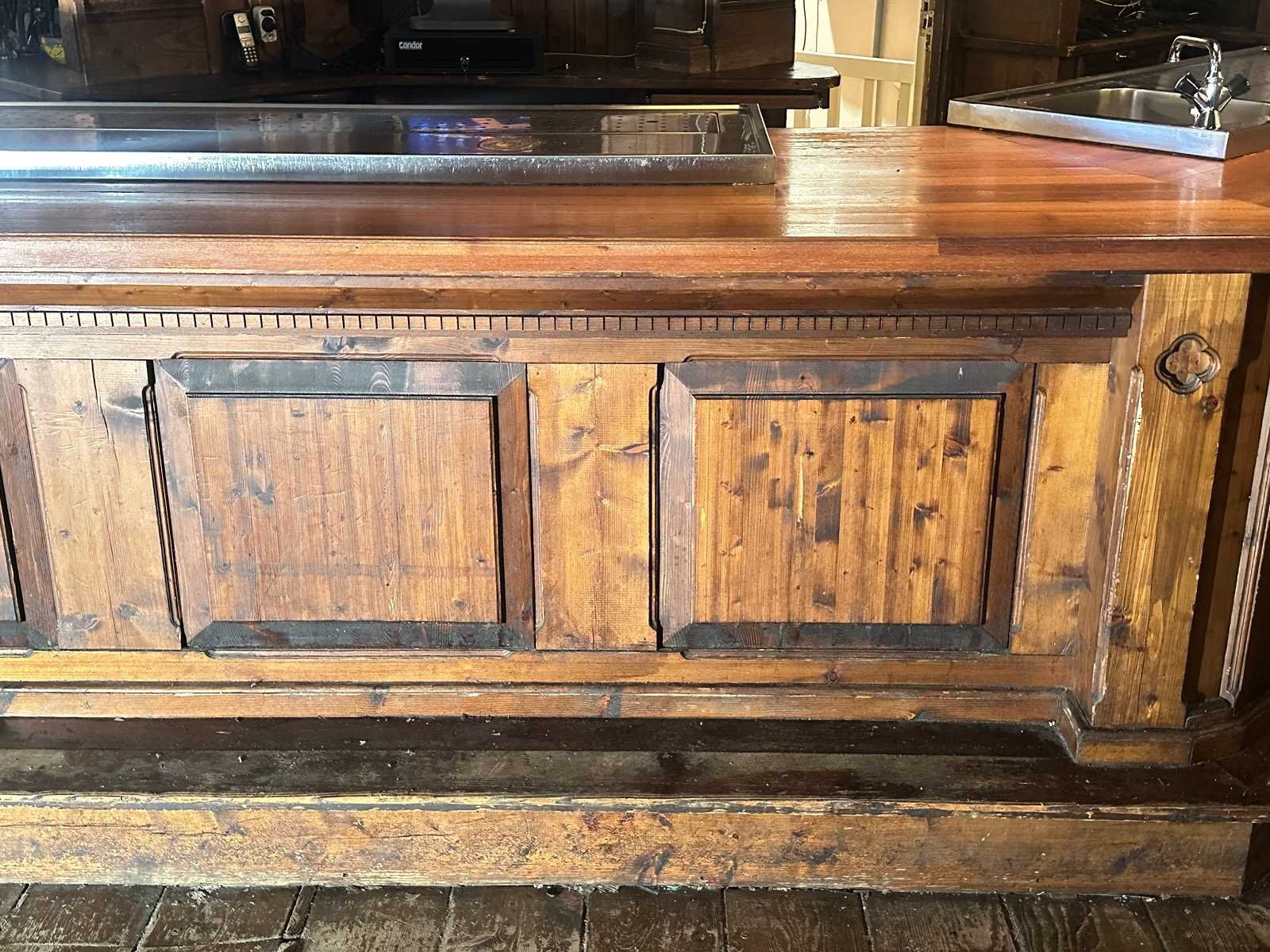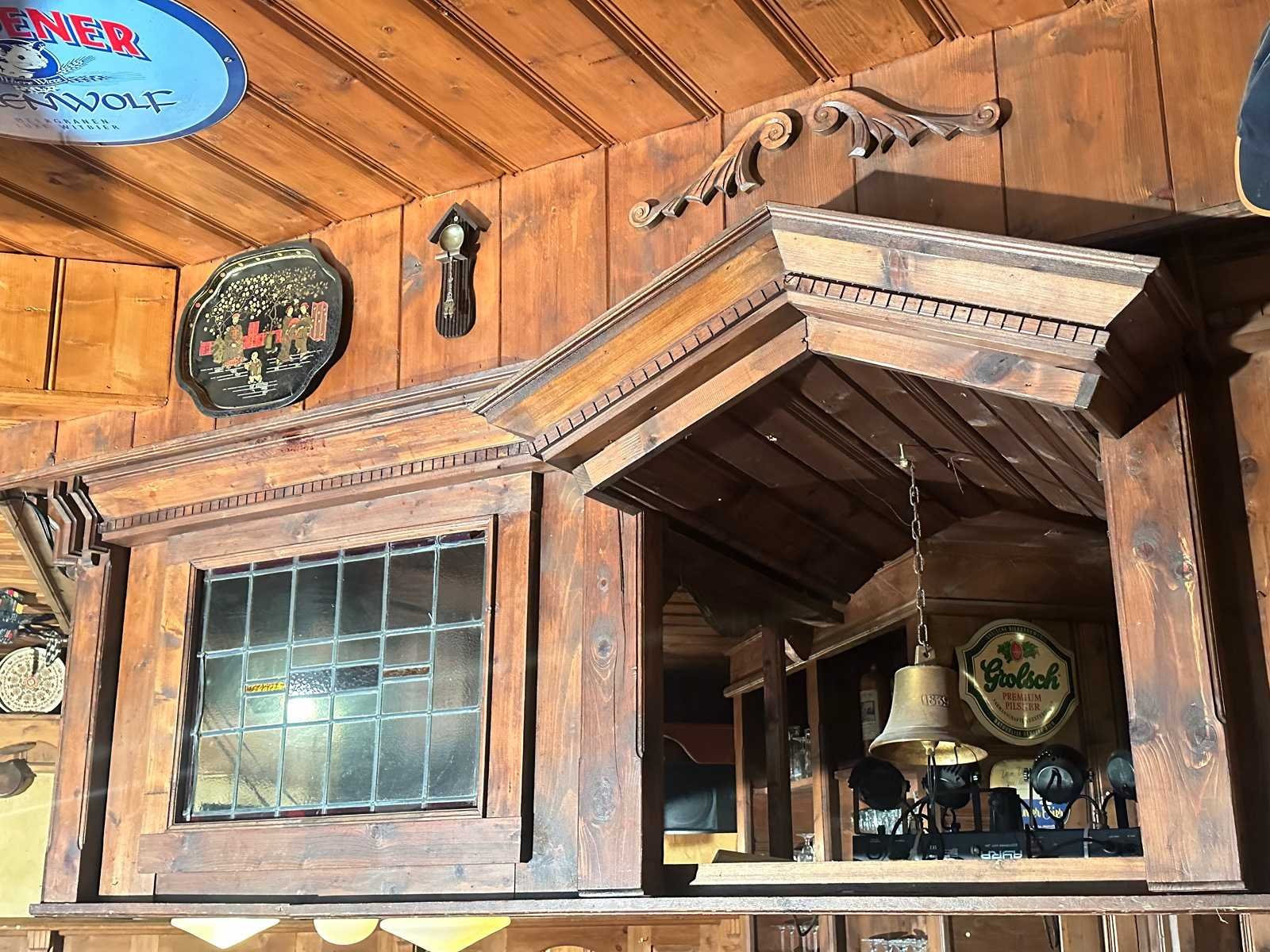 Deze rustieke volledige cafébar bestaat uit een bar, bovenbouw en achterkast. De afmeting van de bar is 490x460x105 cm. De kast heeft een afmeting van 170x60x 285 cm. Exclusief barkoeling en kassasysteem. Inclusief antieke scheepsbel. Totale afmeting L: 4900mm Totale afmeting Breedte: 4600mm Totale afmeting Hoogte: 2850mm