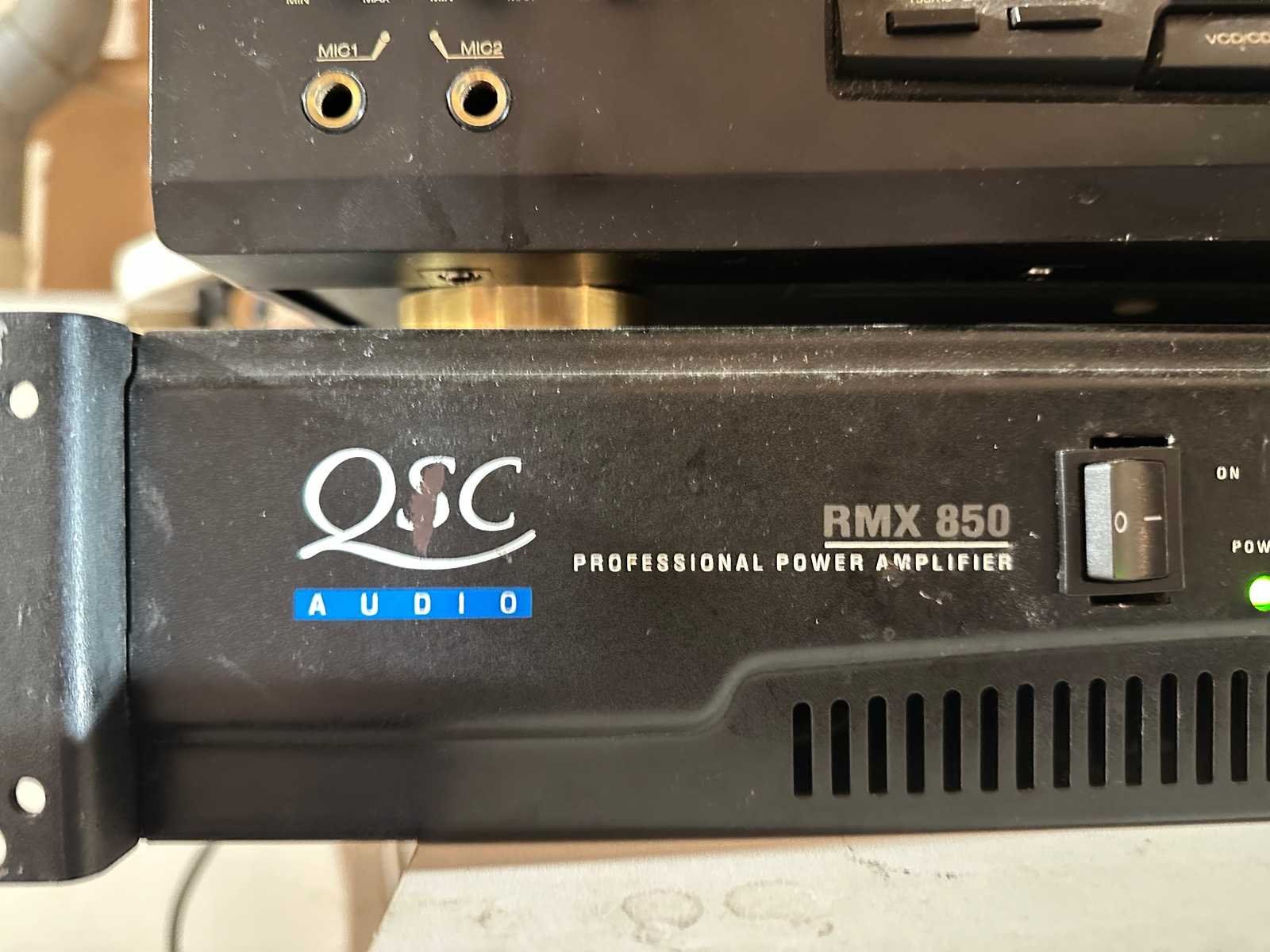 Deze set bestaat uit een KODA versterker AV-1068A en een QSC versterker RMX 850.