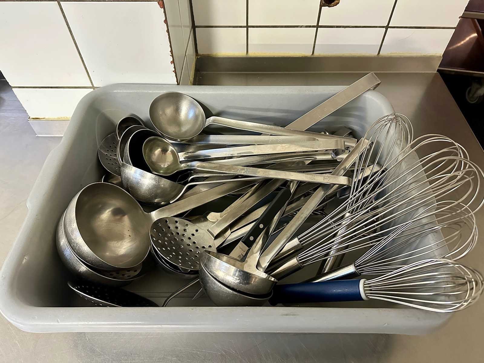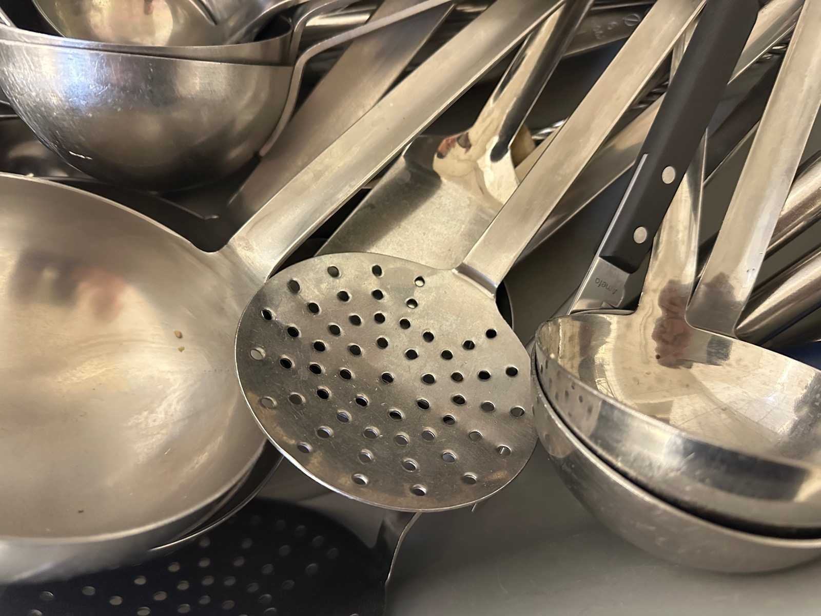 Deze partij bestaat uit soeplouches, gardes en schuimspanen inclusief kunststof afruimbak.