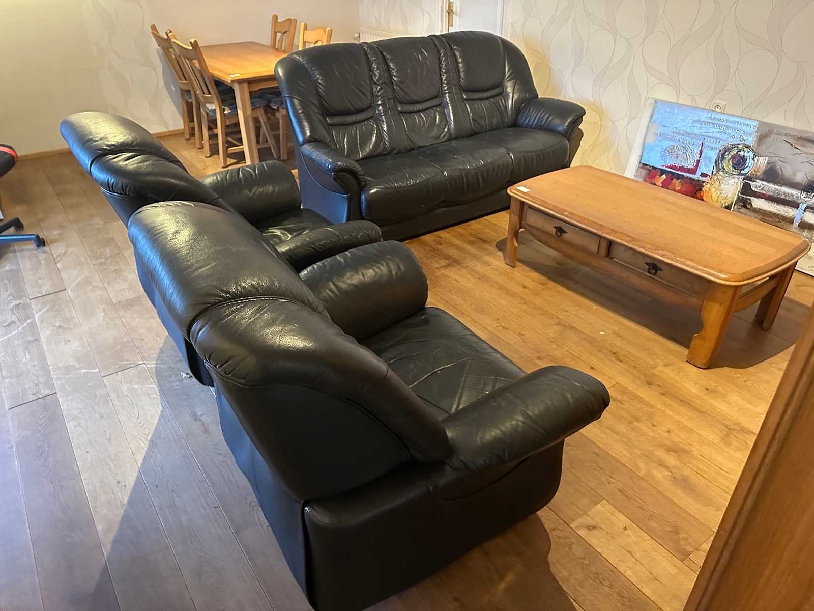 Afmeting van de bank is 186x80x109 cm (BxDxH) en de fauteuils 80x80x104 cm.