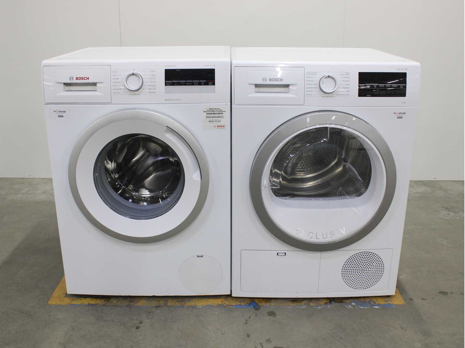 Deze wasmachine en wasdroger komen uit een partij jong gebruikt A-Merk witgoed. De machines zijn volledig getest, gereinigd en indien nodig gerepareerd. Houdt er rekening mee dat de machines lichte gebruikssporen kunnen hebben. Wasmachines en wasdrogers hebben vaak standaard afmetingen. Hoogte 85cm, Breedte 60cm en Diepte 60 tot 70cm, incl. uitstekende slangen e.d. aan de achterzijde. Als de machine vrij komt te staan is de afmeting minder relevant. Wil je de machine in een nis plaatsen of inbouwen? Controleer dan de exacte afmetingen op basis van het aangeboden merk en model/type. Within 7 days Merk: Bosch Serienummer: WAN28201GB/19 en WTG846C0NL/13