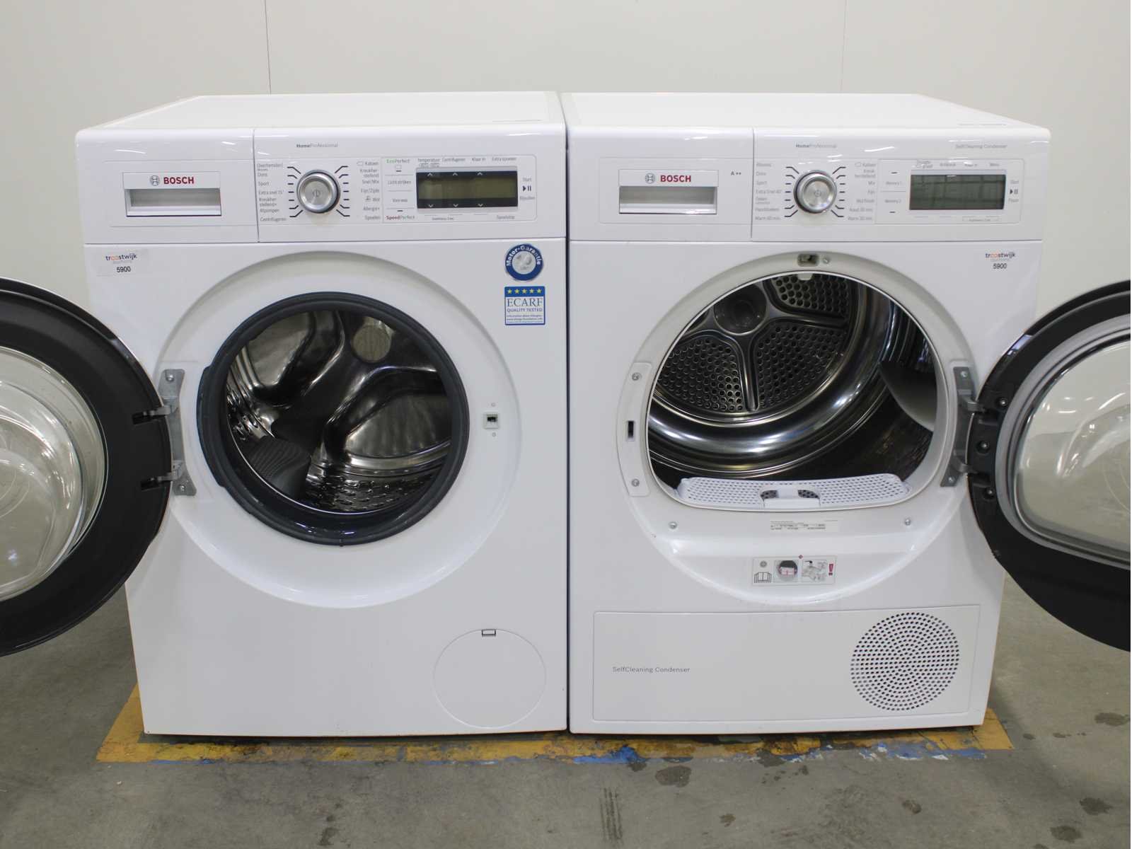 Deze wasmachine en wasdroger komen uit een partij jong gebruikt A-Merk witgoed. De machines zijn volledig getest, gereinigd en indien nodig gerepareerd. Houdt er rekening mee dat de machines lichte gebruikssporen kunnen hebben. Wasmachines en wasdrogers hebben vaak standaard afmetingen. Hoogte 85cm, Breedte 60cm en Diepte 60 tot 70cm, incl. uitstekende slangen e.d. aan de achterzijde. Als de machine vrij komt te staan is de afmeting minder relevant. Wil je de machine in een nis plaatsen of inbouwen? Controleer dan de exacte afmetingen op basis van het aangeboden merk en model/type. Within 7 days Merk: Bosch Serienummer: WAY32541NL/39 en WTY87700NL/17