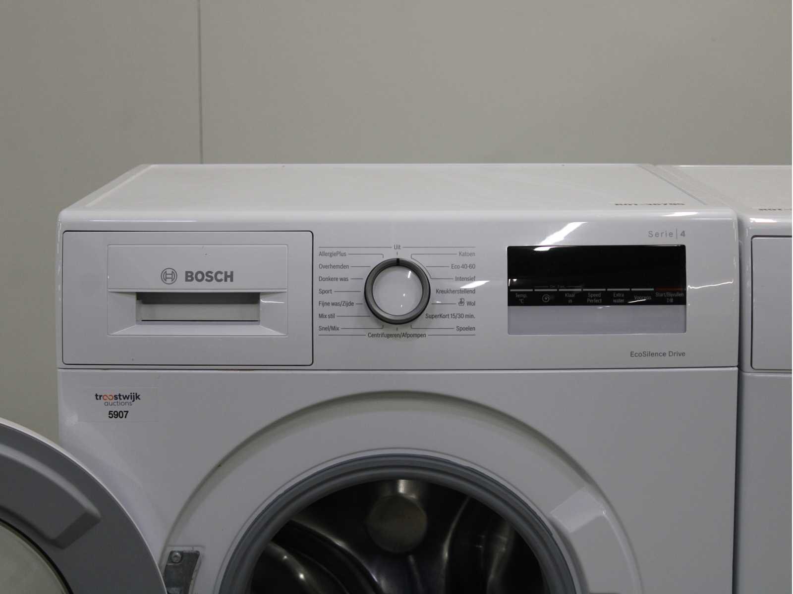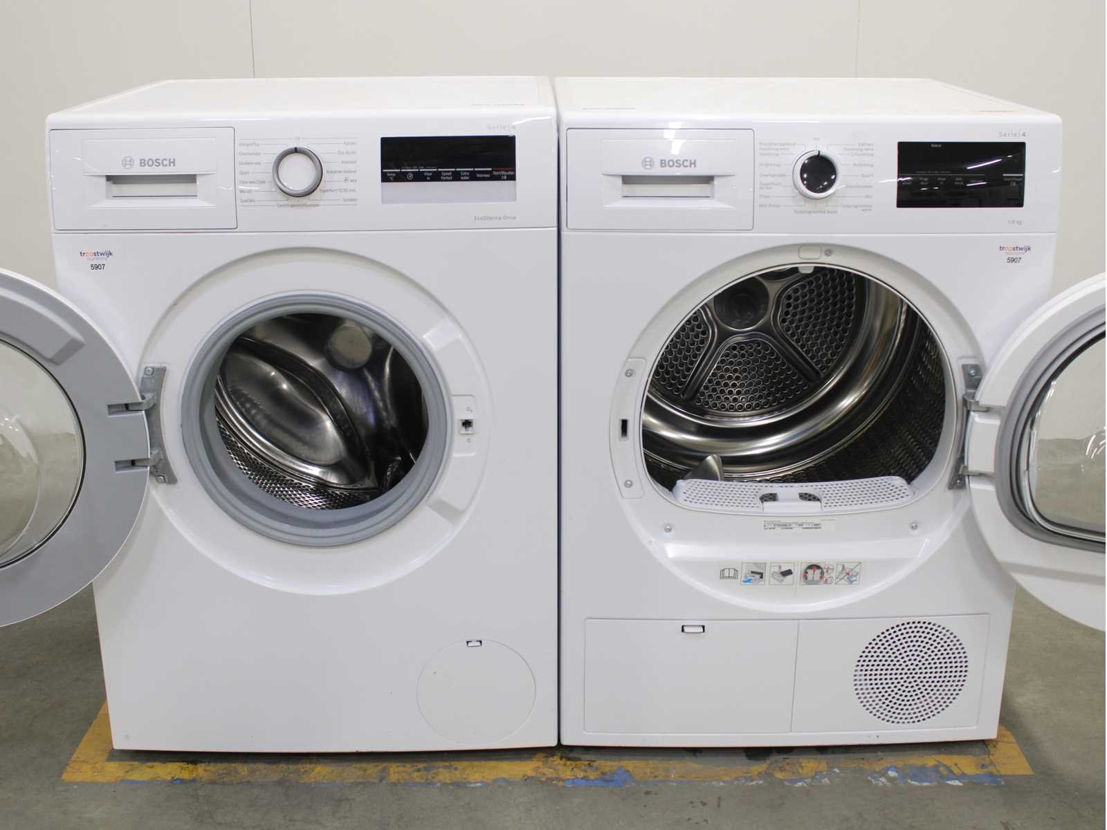Deze wasmachine en wasdroger komen uit een partij jong gebruikt A-Merk witgoed. De machines zijn volledig getest, gereinigd en indien nodig gerepareerd. Houdt er rekening mee dat de machines lichte gebruikssporen kunnen hebben. Wasmachines en wasdrogers hebben vaak standaard afmetingen. Hoogte 85cm, Breedte 60cm en Diepte 60 tot 70cm, incl. uitstekende slangen e.d. aan de achterzijde. Als de machine vrij komt te staan is de afmeting minder relevant. Wil je de machine in een nis plaatsen of inbouwen? Controleer dan de exacte afmetingen op basis van het aangeboden merk en model/type. Within 7 days Merk: Bosch Serienummer: WAN28223NL/38 en WTH85205NL FD 0309 200007