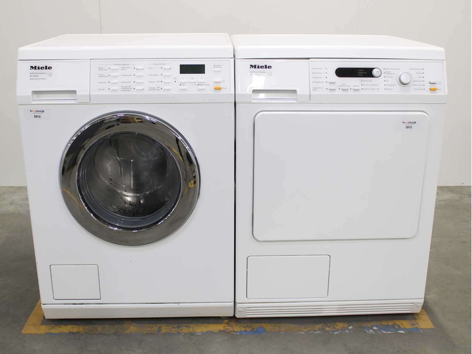 Deze wasmachine en wasdroger komen uit een partij jong gebruikt A-Merk witgoed. De machines zijn volledig getest, gereinigd en indien nodig gerepareerd. Houdt er rekening mee dat de machines lichte gebruikssporen kunnen hebben. Wasmachines en wasdrogers hebben vaak standaard afmetingen. Hoogte 85cm, Breedte 60cm en Diepte 60 tot 70cm, incl. uitstekende slangen e.d. aan de achterzijde. Als de machine vrij komt te staan is de afmeting minder relevant. Wil je de machine in een nis plaatsen of inbouwen? Controleer dan de exacte afmetingen op basis van het aangeboden merk en model/type. Within 7 days Merk: Miele Serienummer: W 5933 en T8841C