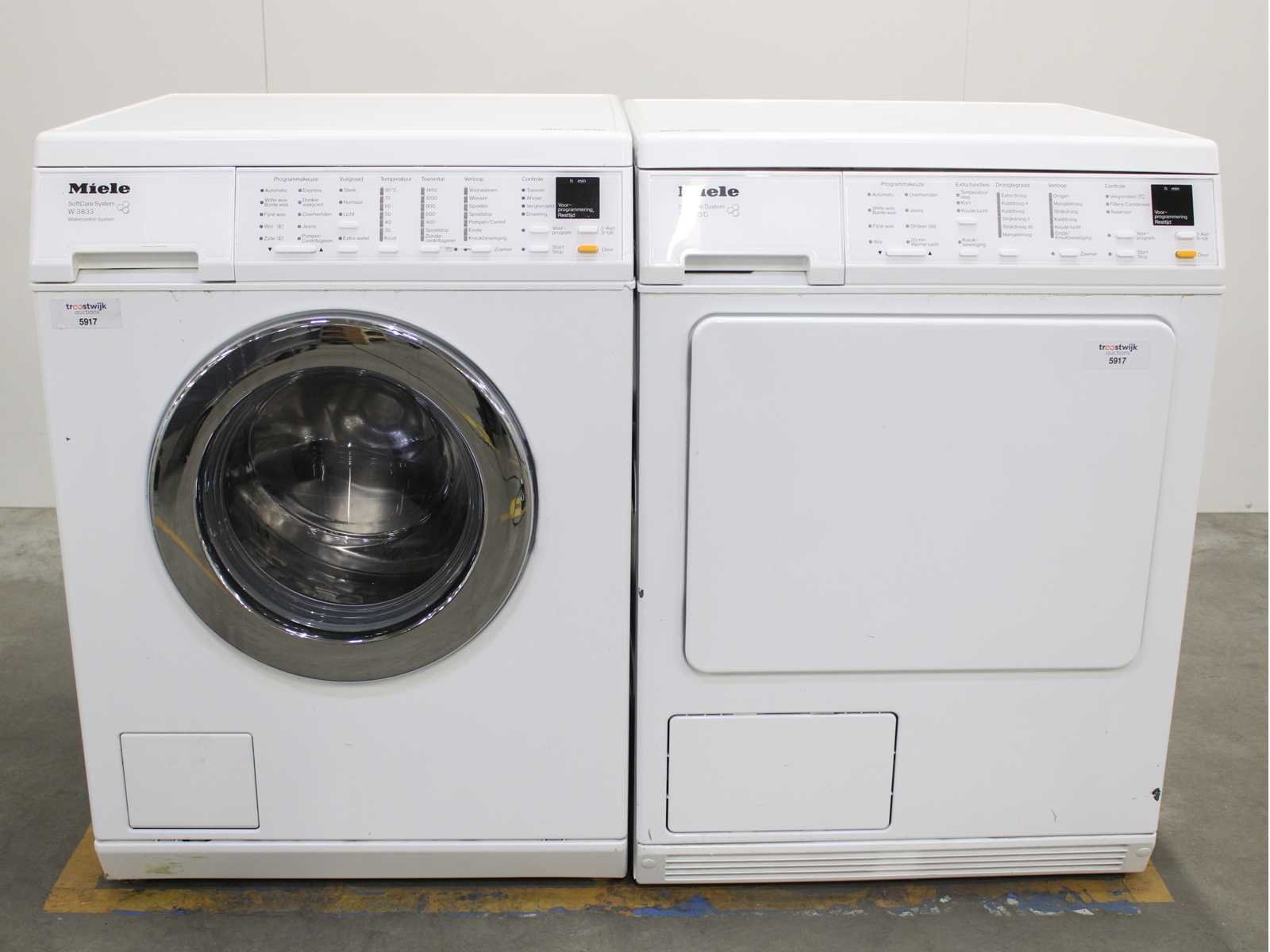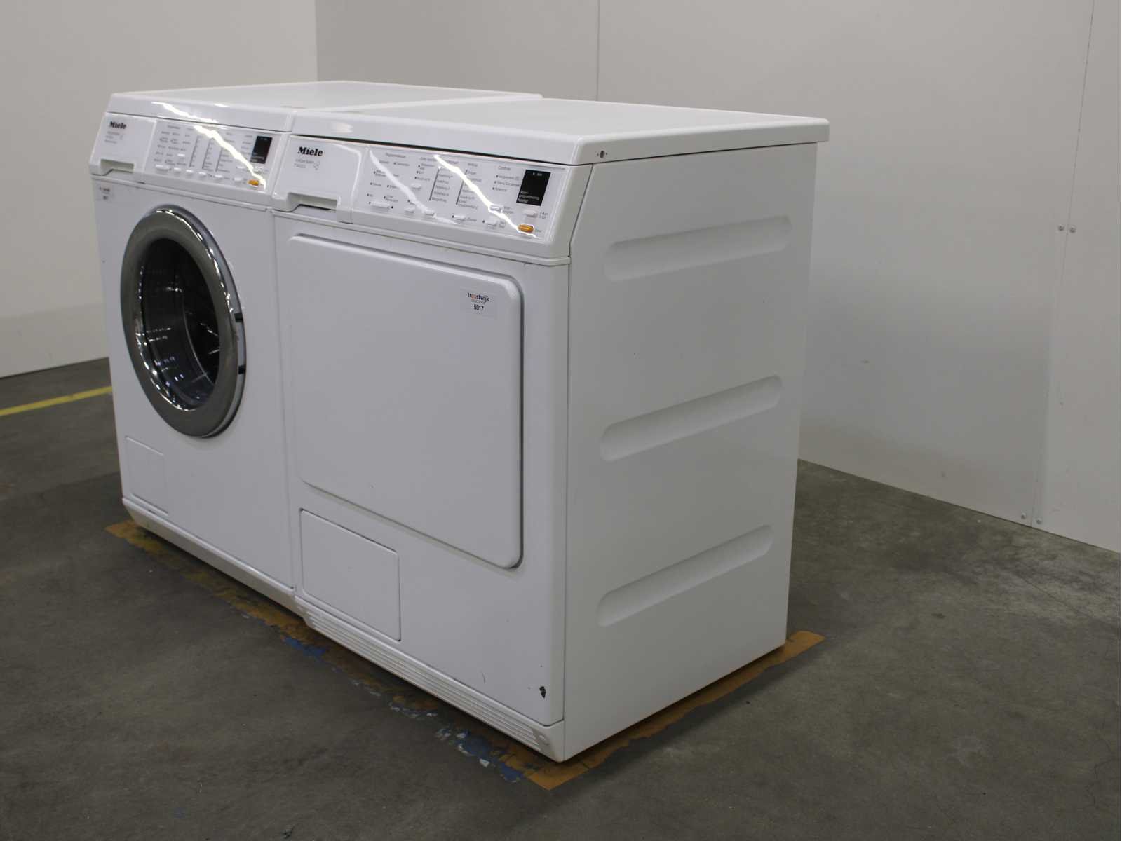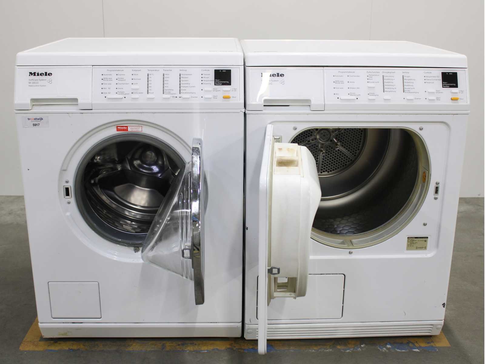 Deze wasmachine en wasdroger komen uit een partij jong gebruikt A-Merk witgoed. De machines zijn volledig getest, gereinigd en indien nodig gerepareerd. Houdt er rekening mee dat de machines lichte gebruikssporen kunnen hebben. Wasmachines en wasdrogers hebben vaak standaard afmetingen. Hoogte 85cm, Breedte 60cm en Diepte 60 tot 70cm, incl. uitstekende slangen e.d. aan de achterzijde. Als de machine vrij komt te staan is de afmeting minder relevant. Wil je de machine in een nis plaatsen of inbouwen? Controleer dan de exacte afmetingen op basis van het aangeboden merk en model/type. Within 7 days Merk: Miele Serienummer: W5821 en T8433C