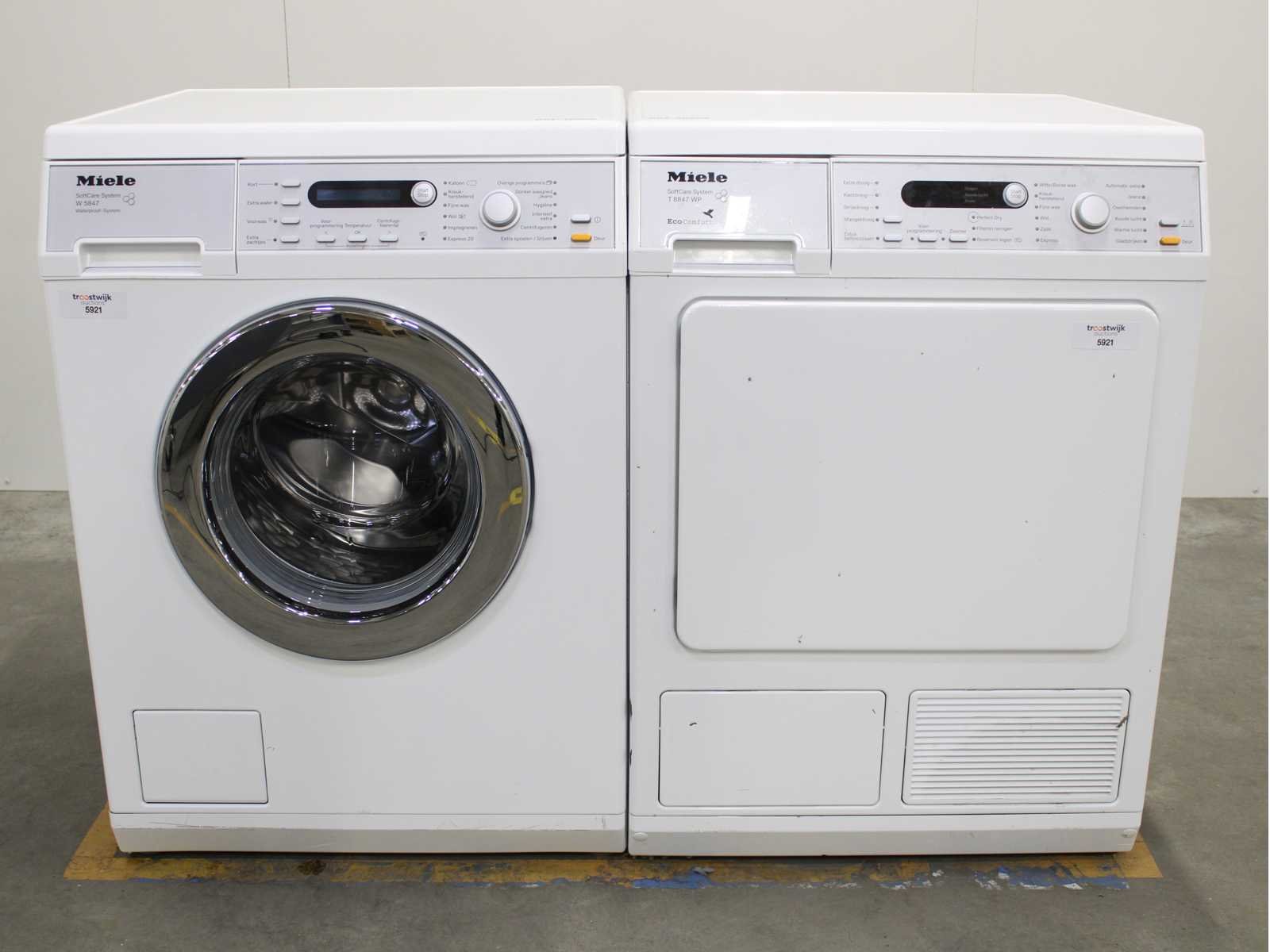 Deze wasmachine en wasdroger komen uit een partij jong gebruikt A-Merk witgoed. De machines zijn volledig getest, gereinigd en indien nodig gerepareerd. Houdt er rekening mee dat de machines lichte gebruikssporen kunnen hebben. Wasmachines en wasdrogers hebben vaak standaard afmetingen. Hoogte 85cm, Breedte 60cm en Diepte 60 tot 70cm, incl. uitstekende slangen e.d. aan de achterzijde. Als de machine vrij komt te staan is de afmeting minder relevant. Wil je de machine in een nis plaatsen of inbouwen? Controleer dan de exacte afmetingen op basis van het aangeboden merk en model/type. Within 7 days Merk: Miele Serienummer: W5847 WPS en T8847WP