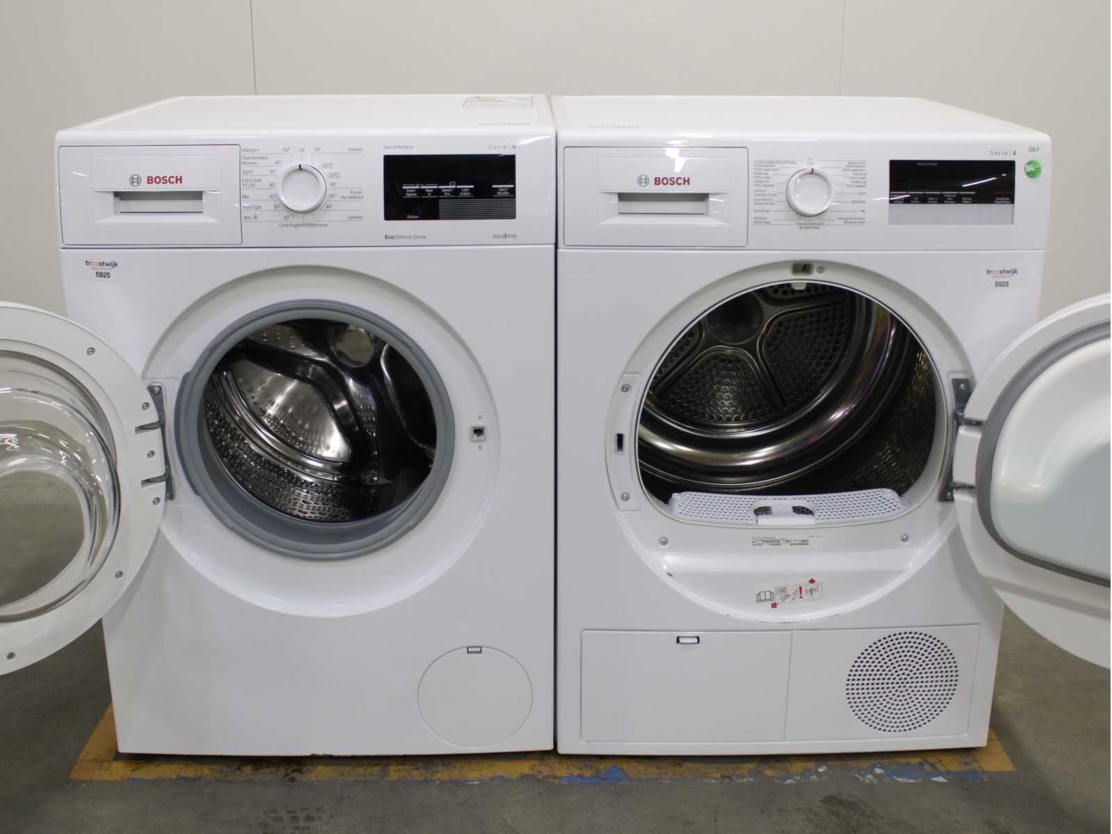 Deze wasmachine en wasdroger komen uit een partij jong gebruikt A-Merk witgoed. De machines zijn volledig getest, gereinigd en indien nodig gerepareerd. Houdt er rekening mee dat de machines lichte gebruikssporen kunnen hebben. Wasmachines en wasdrogers hebben vaak standaard afmetingen. Hoogte 85cm, Breedte 60cm en Diepte 60 tot 70cm, incl. uitstekende slangen e.d. aan de achterzijde. Als de machine vrij komt te staan is de afmeting minder relevant. Wil je de machine in een nis plaatsen of inbouwen? Controleer dan de exacte afmetingen op basis van het aangeboden merk en model/type. Within 7 days Merk: Bosch Serienummer: WNAT323471 en WTN83204FG/03