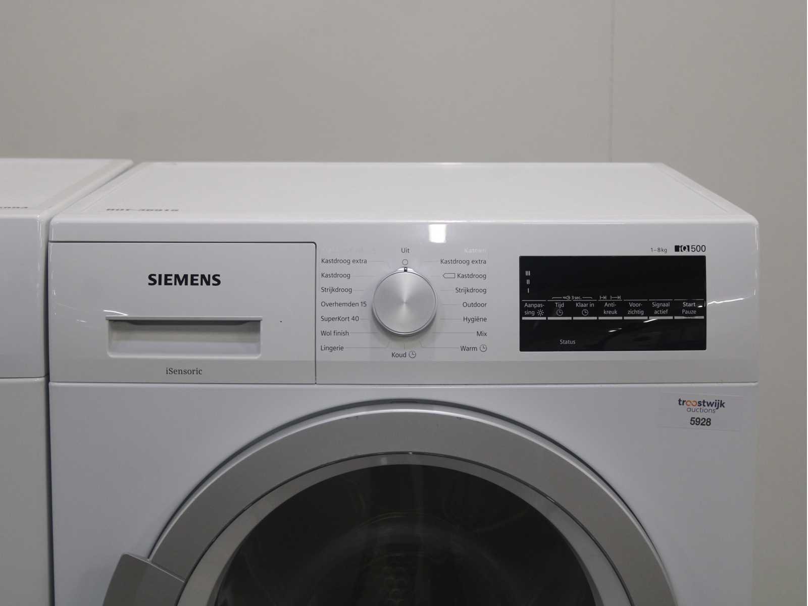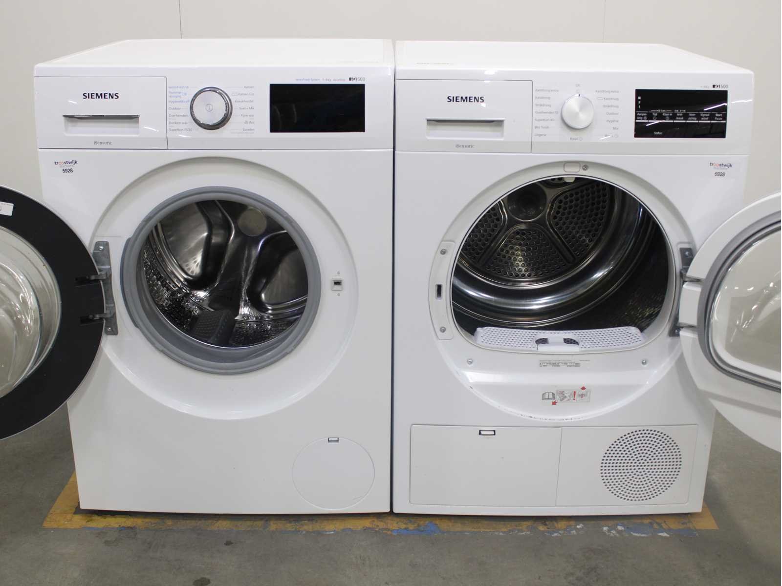 Deze wasmachine en wasdroger komen uit een partij jong gebruikt A-Merk witgoed. De machines zijn volledig getest, gereinigd en indien nodig gerepareerd. Houdt er rekening mee dat de machines lichte gebruikssporen kunnen hebben. Wasmachines en wasdrogers hebben vaak standaard afmetingen. Hoogte 85cm, Breedte 60cm en Diepte 60 tot 70cm, incl. uitstekende slangen e.d. aan de achterzijde. Als de machine vrij komt te staan is de afmeting minder relevant. Wil je de machine in een nis plaatsen of inbouwen? Controleer dan de exacte afmetingen op basis van het aangeboden merk en model/type. Within 7 days Merk: Siemens Serienummer: WM14T780NL en WT46G400NL