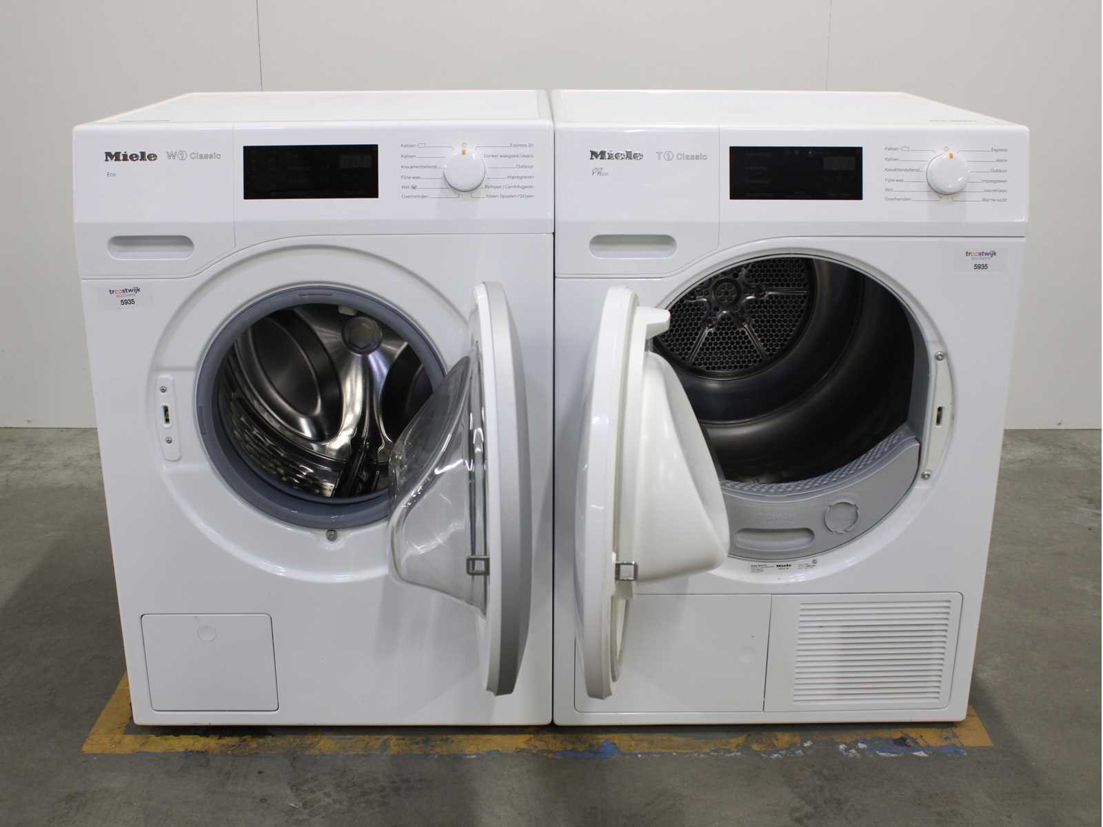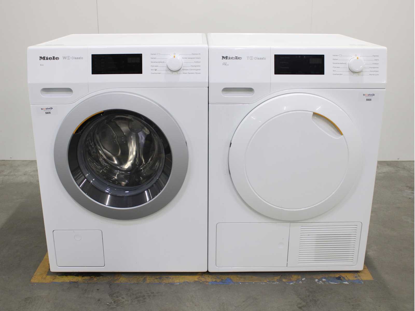 Deze wasmachine en wasdroger komen uit een partij jong gebruikt A-Merk witgoed. De machines zijn volledig getest, gereinigd en indien nodig gerepareerd. Houdt er rekening mee dat de machines lichte gebruikssporen kunnen hebben. Wasmachines en wasdrogers hebben vaak standaard afmetingen. Hoogte 85cm, Breedte 60cm en Diepte 60 tot 70cm, incl. uitstekende slangen e.d. aan de achterzijde. Als de machine vrij komt te staan is de afmeting minder relevant. Wil je de machine in een nis plaatsen of inbouwen? Controleer dan de exacte afmetingen op basis van het aangeboden merk en model/type. Within 7 days Merk: Miele Serienummer: WDB030 en TDB130 WP